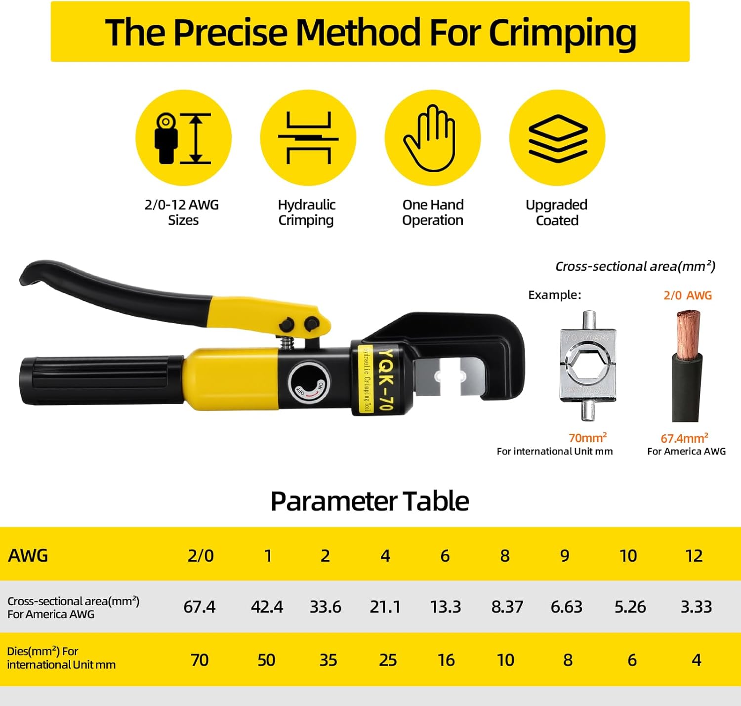 | Included Components | 1x Hydraulic Crimper, 9 x Pairs of Hexagon Crimping Dies,1x Storage Box,Several Sealing Rings |