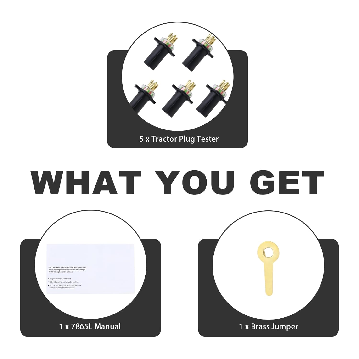 | Included Components | 7-Way Round Pin Tractor Plug Tester |