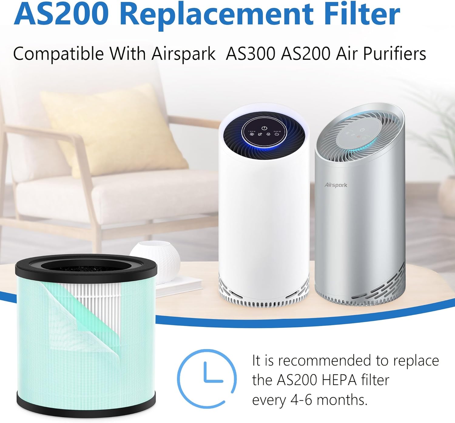 AS200/AS300 H13 True HEPA Replacement Filter Compatible with Airspark AS200 AS300 Air Purifier