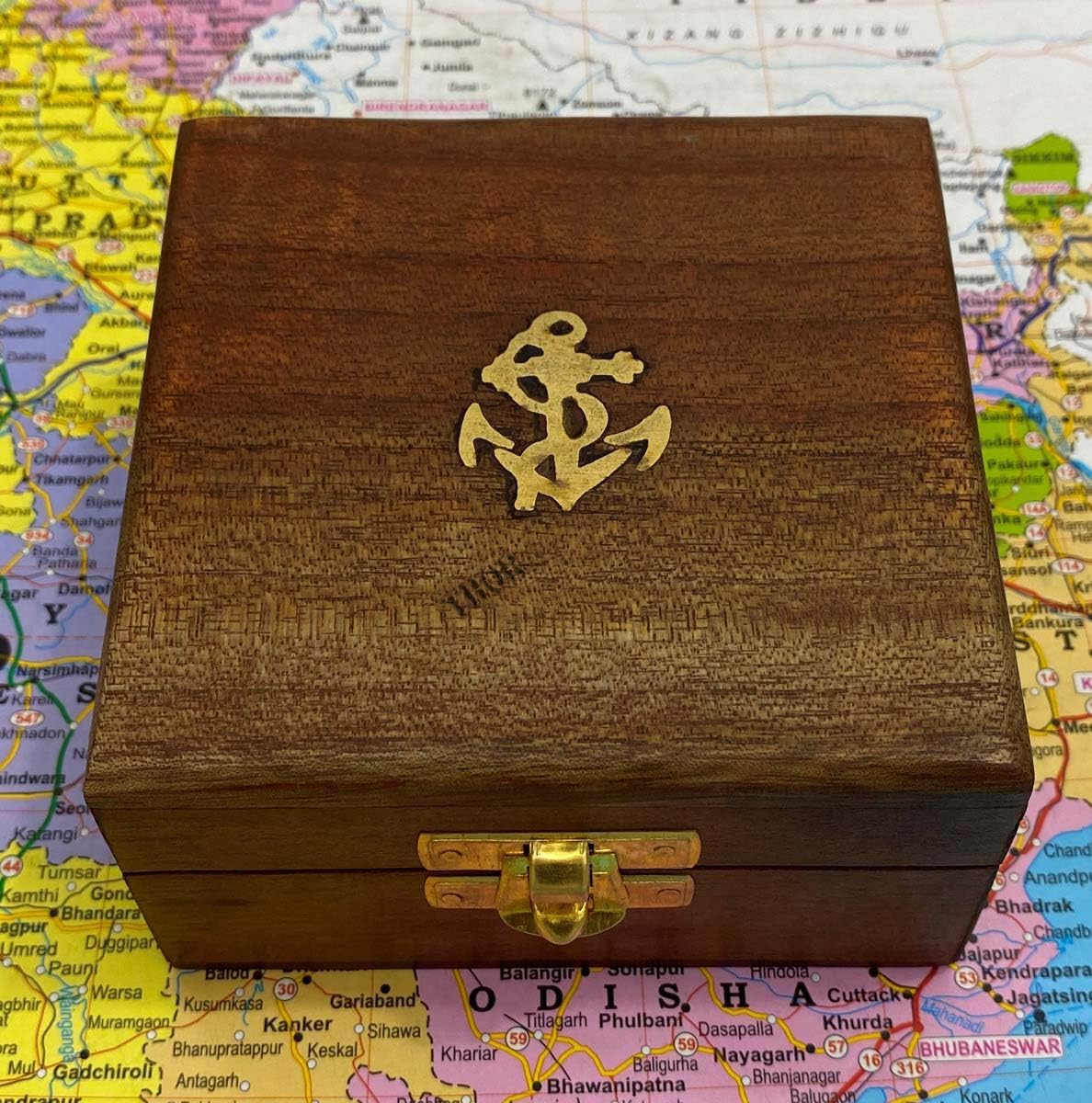 Brass Compass Antique Compass with Leather case Working Brass Antique Pocket Compass with wooden box Nautical Anniversary Fathers Day Brass Pocket Compass Engraved Compass Camping Compass Boating Compass Wedding Gift