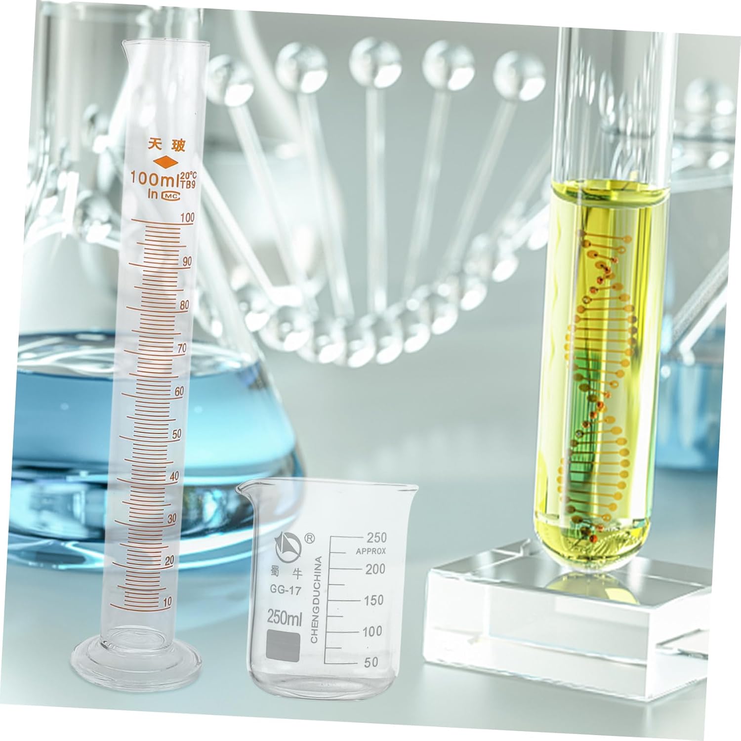 Package List 3 x glass beakers 3 x measuring cylinders 3 x conical flasks Features - Material: Glass Laboratory Conical Flask. - Capacity of glass beaker: 50ml, 100ml, 250ml Glass Graduated Cylinder. - Capacity of conical flask: 50ml, 150ml, 250ml Experiment Conical Flask. - Size: 30.50X7.00X7.00cm/11.99X2.75X2.75in Measuring Cup with Scale - Capacity of measuring cylinder: 50ml, 100ml, 250ml Graduated Cylinder. - Select and glass material, leakage, having Conical Bottle. - ColorTransparent Graduated Beaker - Widely used for education, chemistry, research, or Measuring Cup. - They well suited for experimental projects or kitchen, chemically to acids, bases and many common solvents Graduated Measuring Cup. - With easy-to-read scale that contrast nicely for easier and accurate measuring Graduated Cylinders Set. - High and , tool in your laboratory Measuring Cup Set.Goods DescriptionGraduated Cylinder No bubbles, no burrs, smooth and rounded.Measuring Cylinder Standard capacity: clear scale, easier to identify for accurate measurement.Measuring Cup with Scale More convenient to use for students in school laboratory when doing experiments in chemistry class.Laboratory Measuring Device Made of glass material, , and