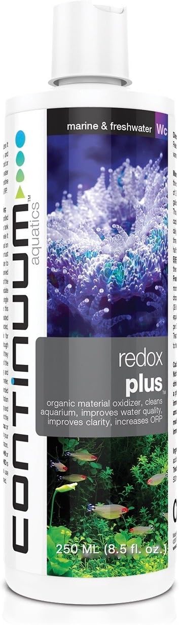 Redox Plus is an organic material oxidizer. It will remove unwanted particulate and dissolved organics, such as leftover food or tea colored or cloudy stains from the water to make it a cleaner, more pristine environment for your animals. Raises ORP. Warning: Redox Plus is strong and must be handled with care! It will temporarily discolor tank water. Use per directions only, otherwise it can kill inhabitants! It must not be used on systems less than 30 days old. There must be enough organic material in the water to warrant treatment. While using, observed inhabitants, if they seem stressed, discontinue use immediately. If immediate termination of treatment is desired, a single dose of Fraction will deactivate this product. Do not use with ozone or chelated copper treatments. Used as directed, Redox Plus is completely safe for invertebrates and marine fish. Although, used as directed, cyanobacteria may recede or die, and if they do, they should be vacuumed out of the system when they become stringy and develop bubbles. If you have a redox meter, do not exceed 460 mv. It is recommended that you suspend carbon or resin filtration during use. A large partial water change and a fresh charge of Labyrinth Carbon and the application of a dose of Marine, Discus or Cichlid Elements T as appropriate for your system is recommended at termination. The simultaneous use of Bacter Clean M or F, Bacter Gen M or F, or Bacter Gen MD is encouraged during treatment. If you use these, add after ten minutes have elapsed.