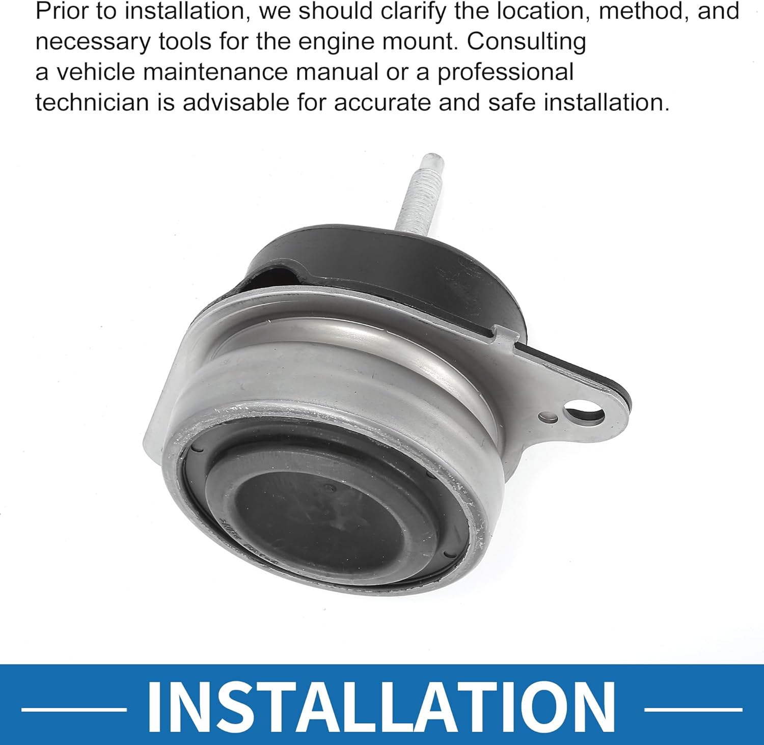 Features:The engine mount is used to install the engine on the frame and rubber on the bracket acts as a shock absorber - effectively reducing vibration and buffering during engine work, which can make the engine run smoother and more stable, and make the driver more comfortable when driving in the cabin. Engine Mount installed on the lower part or side of the engine.Details:Product Name: Engine MountPositions: FrontMaterial: IronColor: Black, Silver ToneOE Number: BB5Z6038FFitment: for Ford Explorer 2.0L 2.3L 2012-2019Please Note:Please make sure the inner diameter of the center bore on the wheel and the outer diameter of the hub bore on the vehicle.This is non-OEM product, accessory ONLY!Package List:1 Pcs Engine Motor Mount