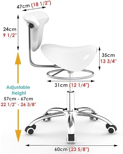 Transform your workspace with our versatile ergonomic saddle stool, designed to enhance comfort and productivity. Upholstered in easy-to-clean PU leather, this stool features a cushioned seat made from high-density foam, providing support for long hours of sitting. Its unique saddle design encourages a natural seating posture, promoting healthy spinal alignment and reducing back pain. With an adjustable height ranging from 57 cm to 67 cm, our stool easily adapts to your needs, making it perfect for various settings. Whether you're at a salon, spa, or working at your home office, the 360° rotating PU wheels ensure smooth movement and accessibility. After your work is done, simply tuck it under your desk for a tidy space. Safety is paramount, and our stool includes an explosion-proof hydraulic air rod, providing peace of mind while you enjoy your seat. With a load-bearing capacity of up to 120 kg, this sturdy stool is suitable for a wide range of users and activities. Ideal for use as a computer desk chair, kitchen seating, or store counter stool, this ergonomic saddle chair is designed to meet the demands of daily life while ensuring comfort and style. Upgrade your seating experience today and enjoy the blend of functionality and elegance in your workspace.