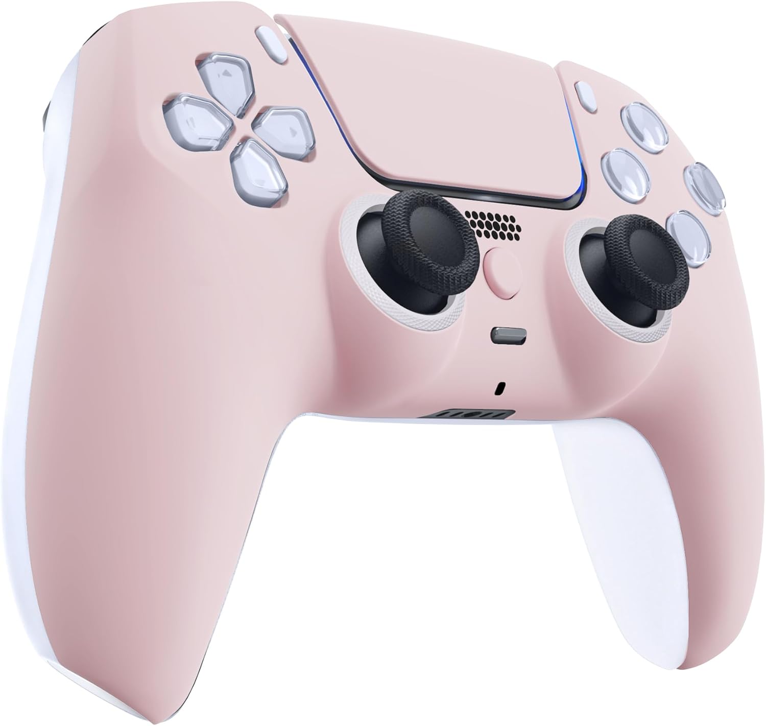 eXtremeRate LUNA Redesigned Front Shell Touchpad Compatible with ps5 Controller BDM-010 BDM-020 BDM-030 BDM-040 BDM-050, Replacement Bottom Shell Back Cover Compatible with ps5 Controller - Cherry Blossoms Pink