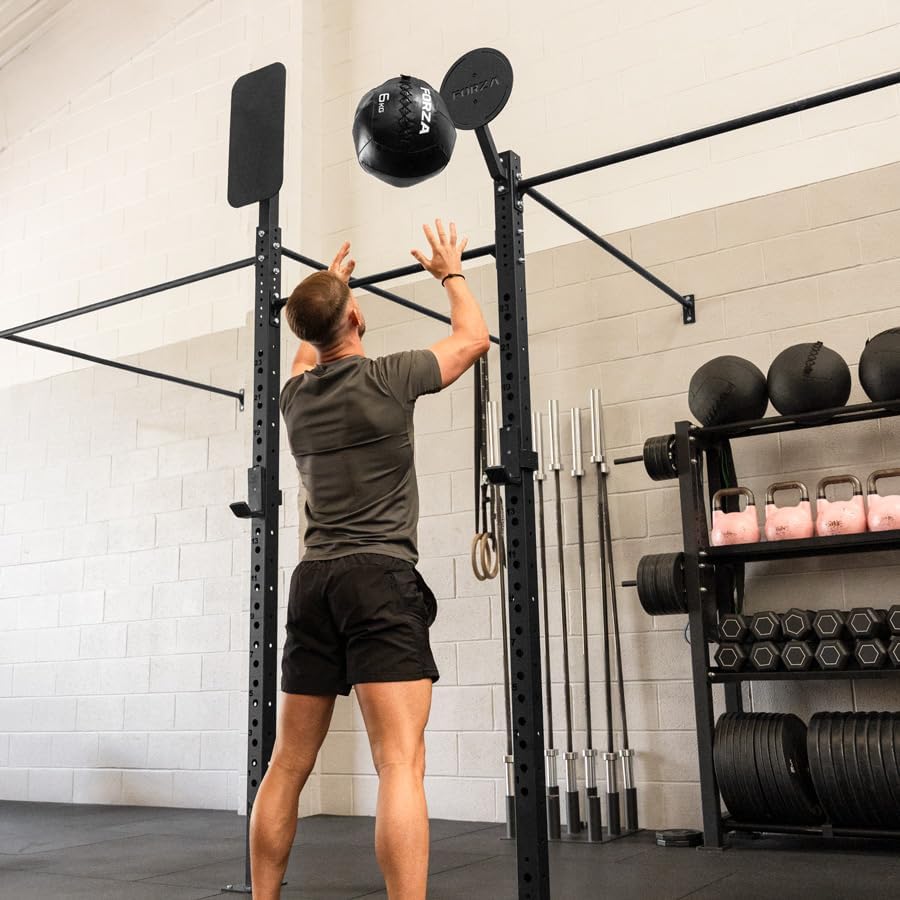 DIMENSIONS:FORZA Single Wall Ball Target: Plate Diameter: 30cm | 12in Mounting Arm Height: 48cm | 19in Weight (Without Mounting Arm): 4kg | 9lbs Weight (With Mounting Arm): 6kg | 13lbsFORZA Double Wall Ball Target: Plate Size: 64cm x 30cm | 25in x 12in (L x W) Mounting Arm Height: 55cm | 22in Weight (Without Rig Mount): 7kg | 15lbs Weight (With Rig Mount): 9kg | 20lbsMATERIALS:Constructed using ultra-durable 5mm thick steel Built to withstand high-impact wall ball throws for long-term durability Matte black powder-coated finish for a professional, scratch-resistant surface Laser-cut FORZA branding for a sleek, premium aestheticMISCELLANEOUS:Assembly required before first use – step-by-step instructions included Double target plates set at official heights – 9ft (women’s) & 10ft (men’s) Suitable for rig or wall mounting – rig hardware included, wall fixings not included Easy to clean & low maintenance wall ball target plates – simply wipe clean with a dry cloth Includes mounting hardware compatible with 60mm x 60mm & 75mm x 75mm box section rigs