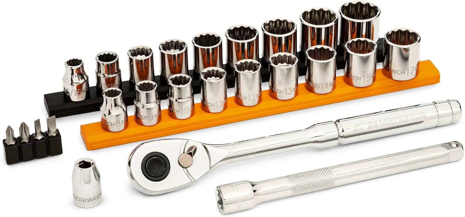 GEARWRENCH started in 1996 with the birth of the Original Ratcheting Wrench. Today the brand has continued to innovate products by adding productivity features to many product platforms. Featuring 45-Tooth full polish chrome quick-release ratchets and knurled extension bars for a much needed grip when working on the job. Full polish chrome makes clean-up easy. Sockets and wrenches feature off corner loading technology to reduce fastener rounding.