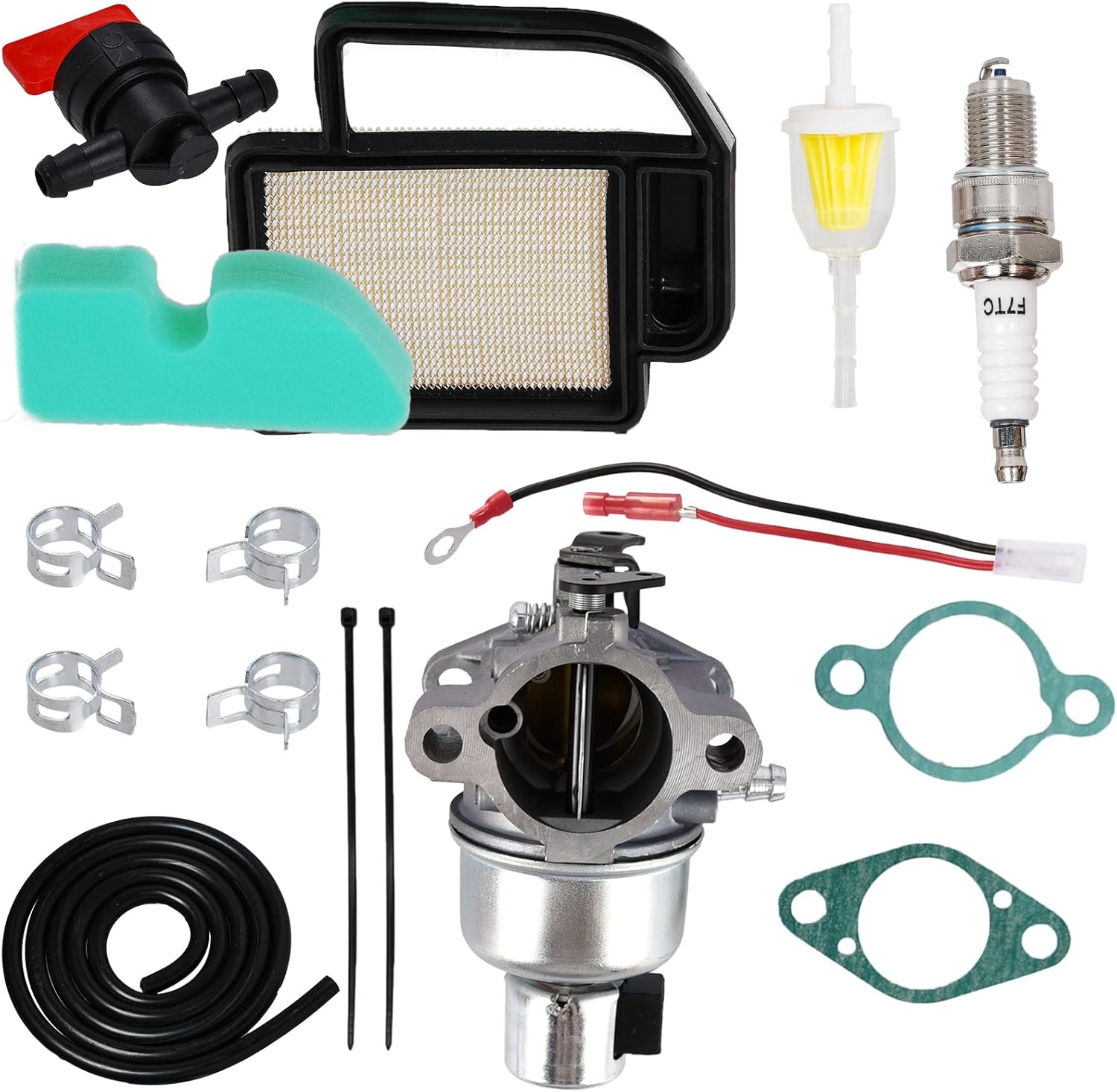 1. Carburetor replaces # 20 853 33-S, 20 853 14-S, 20 853 01-S, 20 853 40-S, 20 853 42-S, 20 853 43-S 2. Air filter replaces # 20 083 02-S, 20 083 06-S. Size: W 5-3/8-inch x L 6-3/4-inch x HT 1-3/8-inch 3. Compatible with Kohler SV470 SV530 SV540 SV541 SV590 SV591 SV600 SV601 SV610 SV620 engine You Will Get: - 1 carburetor - 2 gasket - 1 cable - 1 air filter - 1 pre filter - 1 fuel filter - 2-feet fuel line - 4 clamps - 1 fuel shut-off valve - 1 spark plug ** Please check the pictures carefully before you buy. If you are not sure if this is the correct item for your machine please send us all your machine numbers and we will gladly check for you.