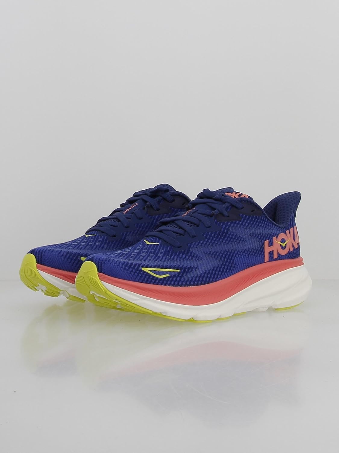 Hoka One One Womens Clifton 9 Textile Evening Sky Coral Trainers 5.5 UK