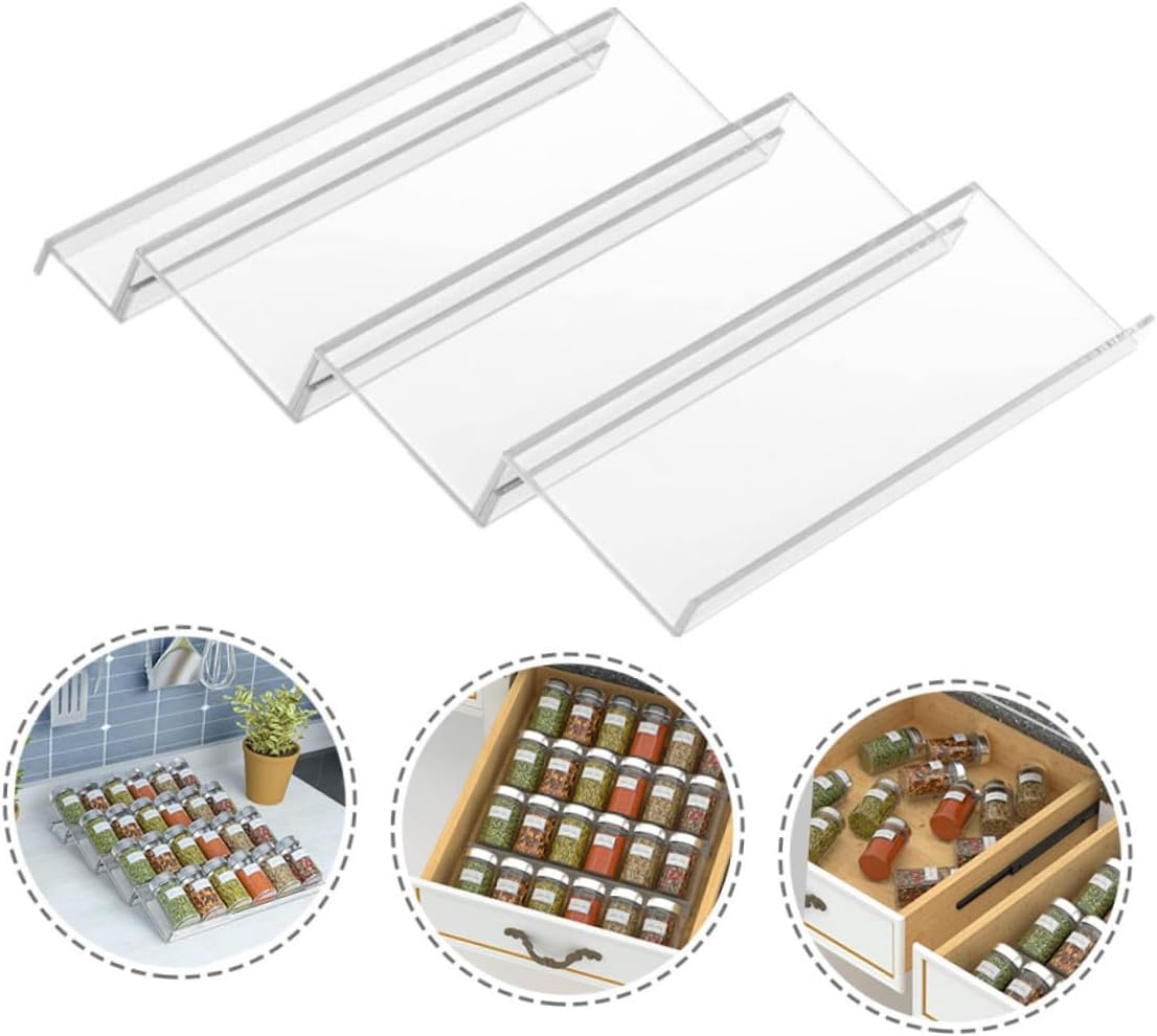Package Include 1 x Spice Bottle Rack Set Characteristics -Product Info:Seasoning storage rack - Color: Transparent. - Material: Acrylic. - Size: 45.00X34.00X4.30 cm/ 17.68X13.36X1.69 inch. - You can place it in kitchen drawers, cabinets, shelves, cupboards or on countertop Tiered Drawer Storage. - Create more space in kitchen cabinets with this functional tiered shelf organizer kitchen storage rack. - Made of acrylic materials, multi-tiers design, you can expands the size that you need. - It is perfect for storage seasoning, spices, curries, salts, baking supplies and more drawer spice storage rack. - It help to keep your kitchen looking organized and clean, easy to install spice rack drawer insert.Goods Descriptiontiered drawer organizer It is a beautiful tool in the kitchen, enough space for spices and seasoning bottles.Tiered Drawer Storage You can place it in your kitchen cabinet, will not take up countertop space, convenient for storing seasoning jars.spice rack drawer insert This spice storage rack is made of premium acrylic material, transparent design, and sturdy