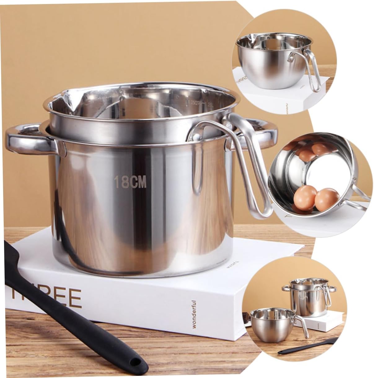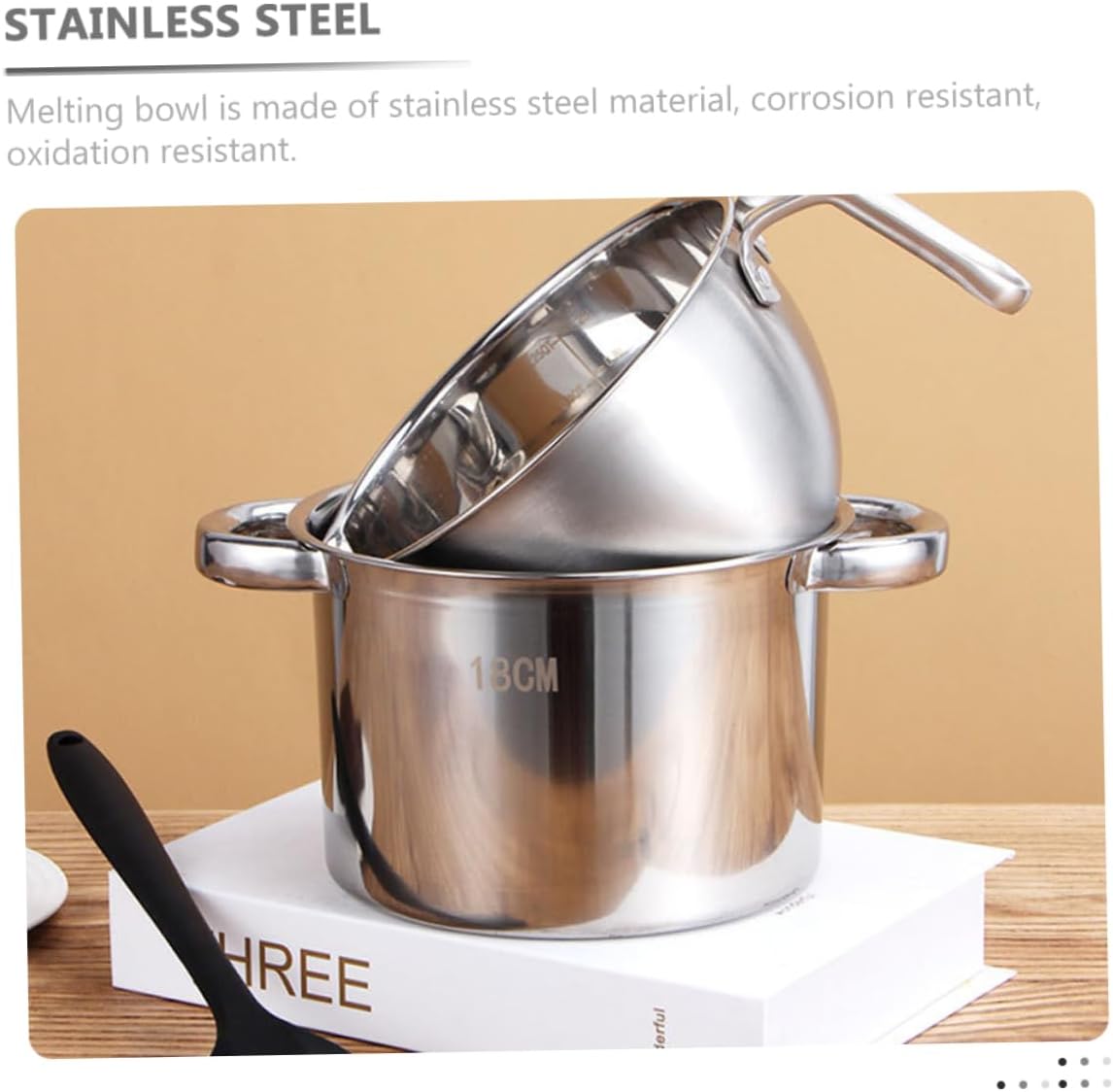 Package Include 1 x outer pot 1 x interior pot Characteristics -Size:18.00X18.00X11.50cm/7.07X7.07X4.52in(outer pot) stovetop milk warmer -Color:Silver Heating Pot -Material:Stainless steel chocolate melt bowl -Size:16.00X9.70X9.00cm/6.29X3.81X3.54in(interior pot) cake melt bowl - Stainless steel melting bowl can be used to melt butter, cheese, caramel, chocolate, sweets, wax, etc Double Boiler For Chocolate Melting. - Easy to clean by hand; compact design space to storage, without taking space Melting Pot. - Proper size make it easier to operate, with two pour spouts, more convenient Butter Heating Pot. - Melting bowl is made of stainless steel material, , resistant, Stainless Steel Double Boiler. - The handle is convenient for taking, it can prevent scalds when heating. Send it to your friends, they will love it Chocolate Melting Pot.Goods DescriptionMelting Pot It is perfect for heating oil use.milk cooker This butter melting pot is manufactured with reliable stainless steel materials, so that it .Stainless Steel Double Boiler Fine workmanship and creative appearance their popularity and practicality.Kitchen Supplies Easy to use, it's a must-have in the kitchen and a great friends and family