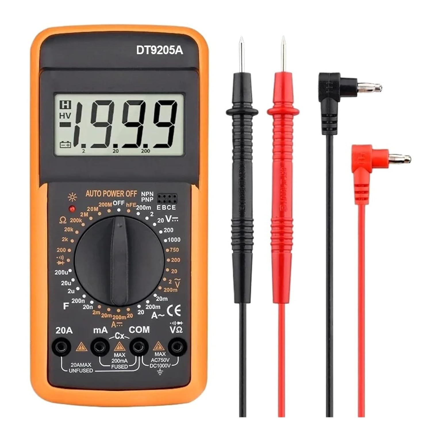 Digital Multimeter True RMS AC/DC Ammeter Voltmeter Manual Range Transistor Tester Ohm Capacitance Diode DT9205A