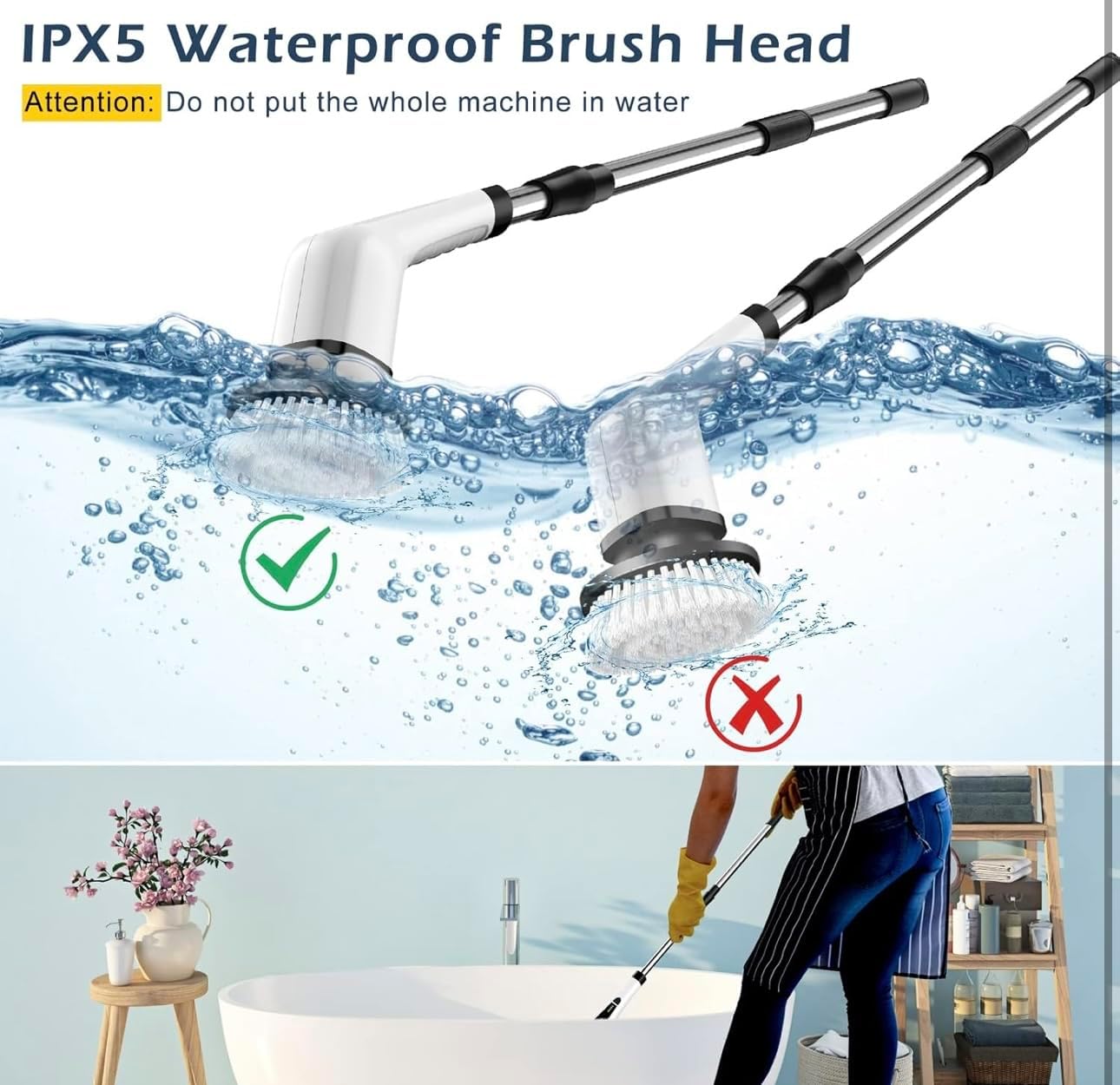cleaning assistant for home and car. With 8 interchangeable brush heads, two-speed control, and a 90-minute runtime, it delivers powerful, effortless cleaning for every surface. Its cordless design makes it easy to move from room to room, while the extendable handle saves your back from bending. From scrubbing tiles and tubs to shining car rims and glass doors, this scrubber does it all. Built with IPX7 waterproof protection, it’s safe to use even in wet areas. Say goodbye to manual scrubbing and hello to sparkling clean spaces with minimal effort!