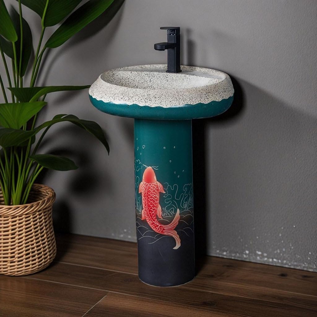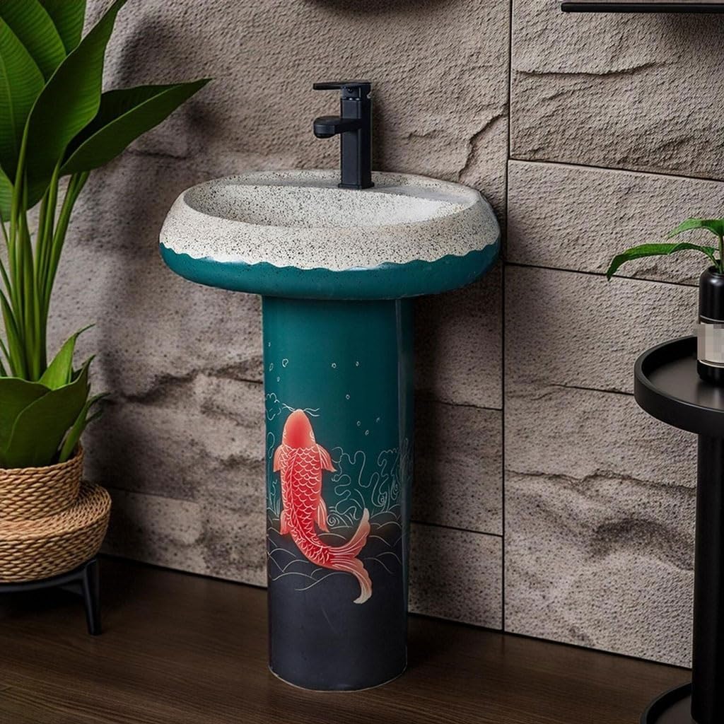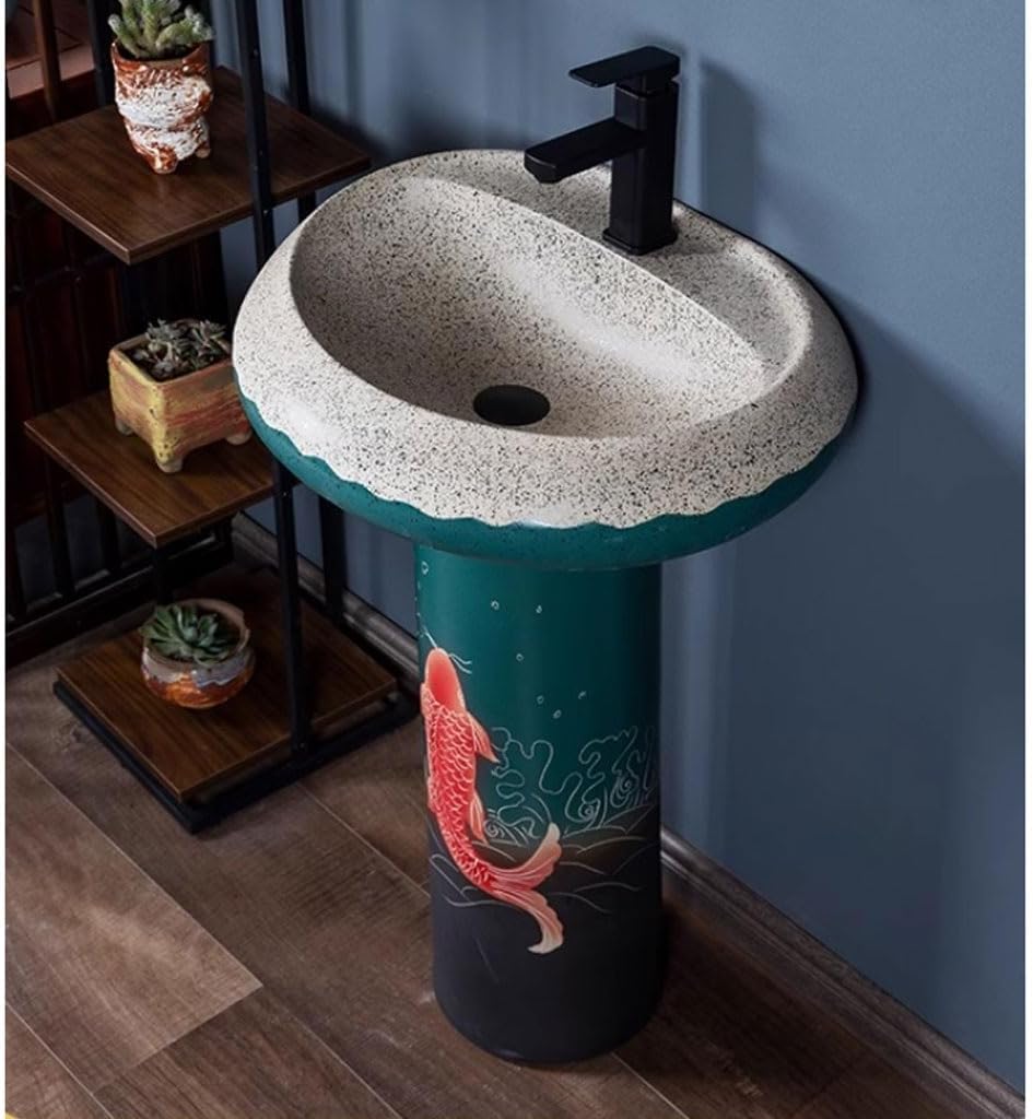 This pedestal sink is a perfect addition to home bathrooms, courtyards, parks, hotels, shopping malls and other commercial environments. Product name: Pedestal sink Product material: Ceramic Product size: 56cm/22.04inX82cm/32.28in Product packaging: Contains 1 + faucet Notes: Please confirm the product size color before purchasing Items than main products shown in picture are for demonstration purposes only not included. Due differences light, display personal color, there may be between actual photo, please refer product. The above data reference only. The manually measured will an error of 0-2cm. Please product, thank you.