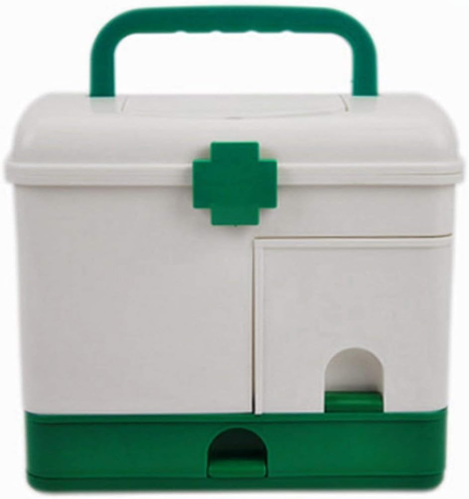PRECISION ENGINEERED - Our patented clam-shell design holds the key to its strength and hygiene, while efficient processing in UK factories keeps quality consistent and our products suitable for commercial and everyday use. Features: The top of the small box can hold frequently used first-aid bandage, small scissors, tweezers or a cotton swab, etc. Can be quickly removed when needed The side of the drawer box can store some bottles of oral drugs such as colds, stomach, used independently, can effectively prevent channeling taste Internal box can be used to hold the container of spray and disinfectant The middle tray can put some ointment drug The bottom of the pumping disk can be individually stored some boxed oral drugs used independently, effectively separated from other external agents placed mix Specifications: Color: Green Material: Plastic Product Size: 22*14.5*20.3cm Product Weight: 640g Package Size: 25*25*15cm Package Weight: 710g Packing: Carton Box Package Content: 1 x Medicine Storage Box