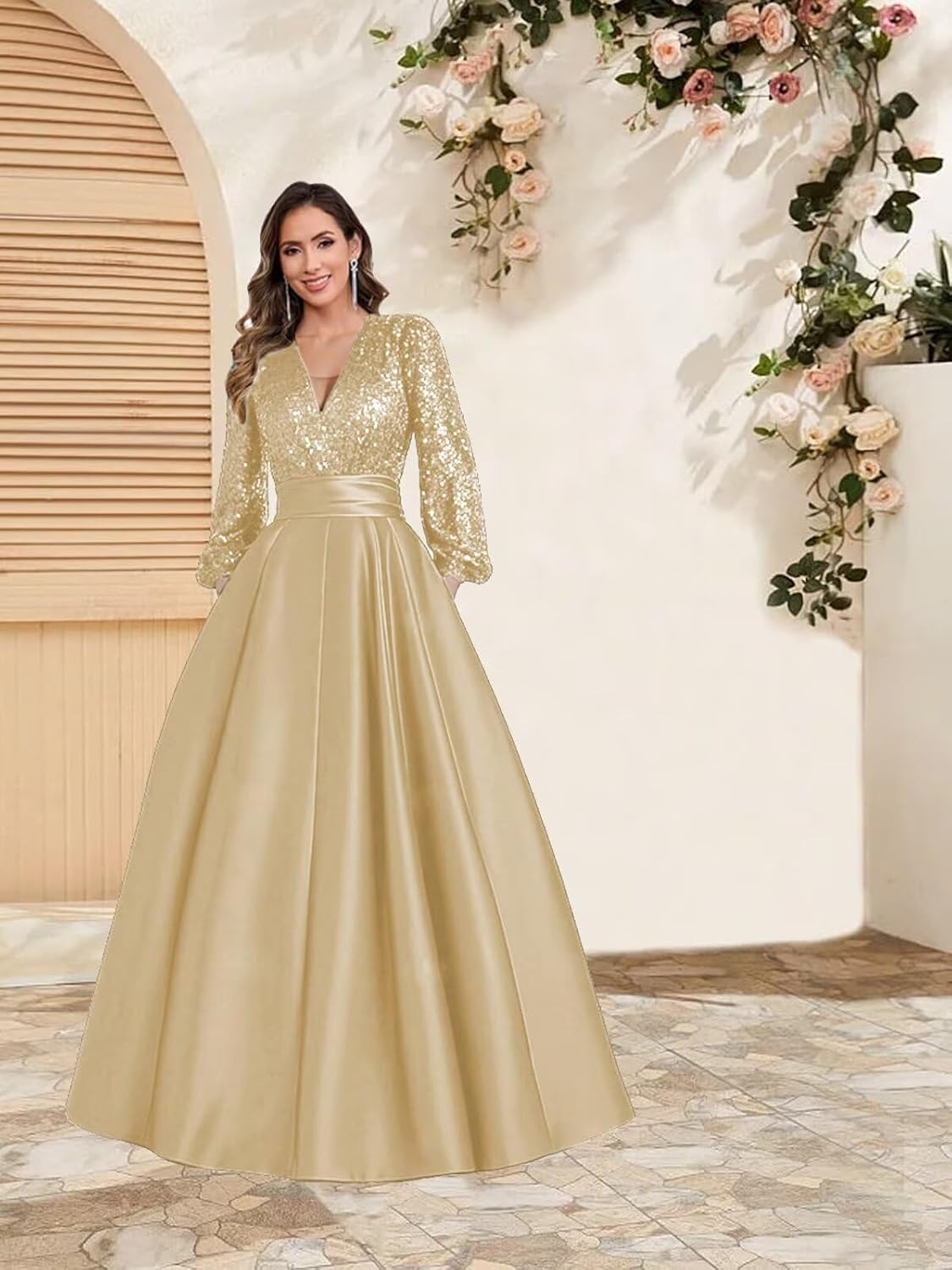 | Embellishment Feature | mother of bride dress, prom dress 2026, puff sleeve formal dress, sequin satin prom dress ball gwon with puffy sleeve, v-neck mother of bride dresses |