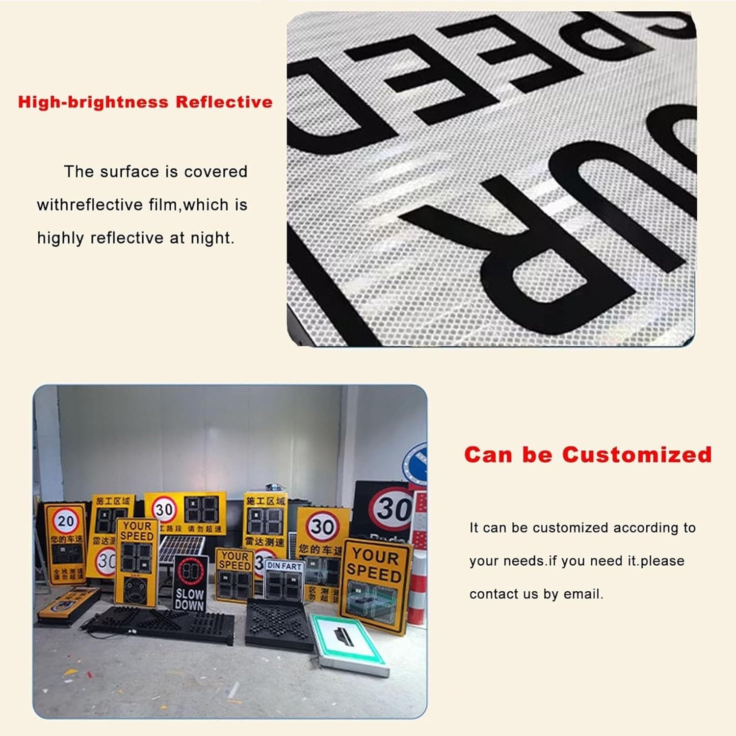 Product Name: Solar Radar Feedback SignDimensions: 50 x 70 cmMaterial: Aluminum AlloyWaterproof Rating: IP65Viewing Range: 500 metersOperating Temperature: -40°C to 60°CPackaging Contents:Solar Radar Feedback Sign*1Clamp*1Solar Panel*1Screws*(as needed)Remote Control*1