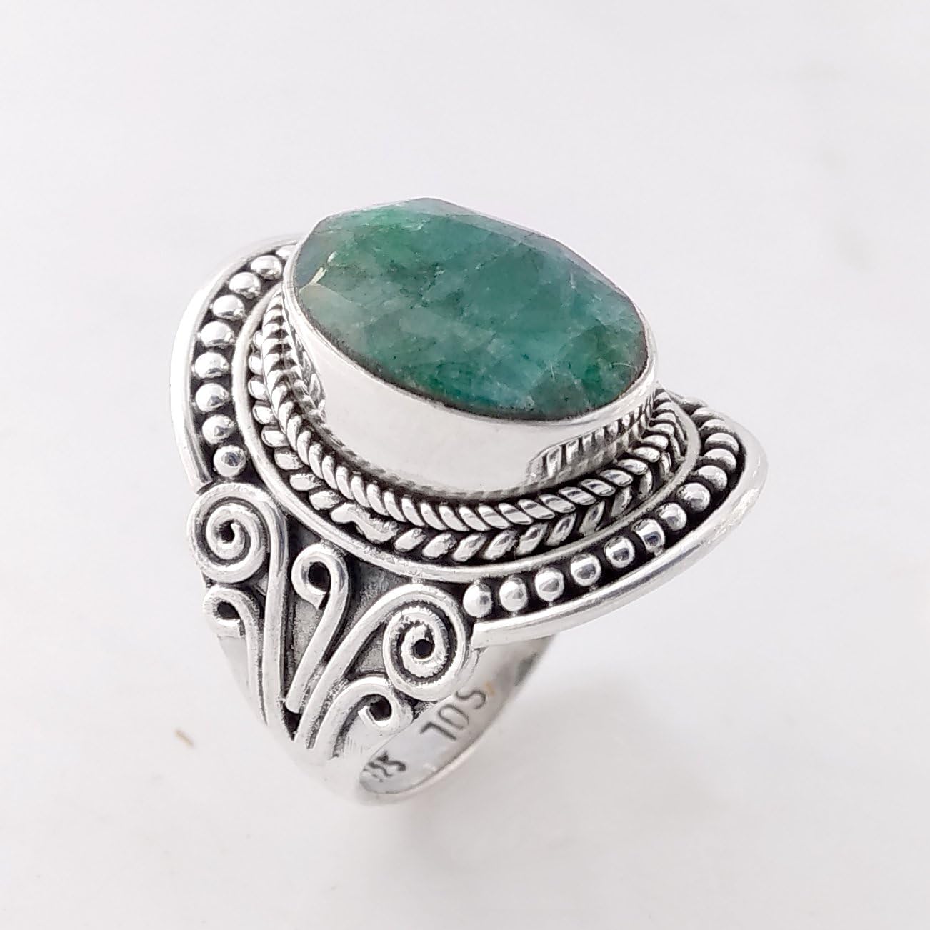 These Solid 925 Sterling Silver Rings For Women & Girls, Sterling Silver Emerald Ring Band Mothers Day Gift, Bridesmaid Gift, Handmade Jewelry are Sleek and Modern yet Classic and Elegant Style. fit for any occasion as daily wearing home and office. Carefully packed in beautiful box. Absolutely a great gift to express your love for your mother, girlfriend, fiancee, wife, valentine, family or just a friend, or yourself etc. Great gifts on Mother's Day, Wedding, Anniversary Day ,Valentine's Day or Christmas Day. PREMIUM QUALITY ON A BUDGET. These Sterling Silver Rings 925 Sterling Silver by Aura Jewelry Artisan. Providing quality pieces that satisfy our customers is our primary goal, which is why our jewelry passes extensive quality checkpoints before being shipped to you. Each piece is constructed from high quality materials at a price point that works for you, because everyone deserves a piece of luxury.VERSATILITY MEETS EXCLUSIVITY. This piece is so beautiful you won’t want to take it off—and you won’t need to due to its extreme versatility that makes it the perfect jewelry for all occasions.WHY TO WEAR EMERALD. Individuals with problems related to brain and memory can wear emerald to solve their problems. Emeralds known to have the mystical power to bring good fortune and wisdom to the wearer. Couples can gift each other an emerald to enhance faithfulness and love in the relationship.Product Weight: 8.3 Grams ApproxGemstone: EmeraldGemstone Shape: OvalGemstone Color: GreenJewelry Setting: Bezel SettingProduct Size: All Size (Inches)Metal: 925 Sterling SilverMetal Stamp: 925
