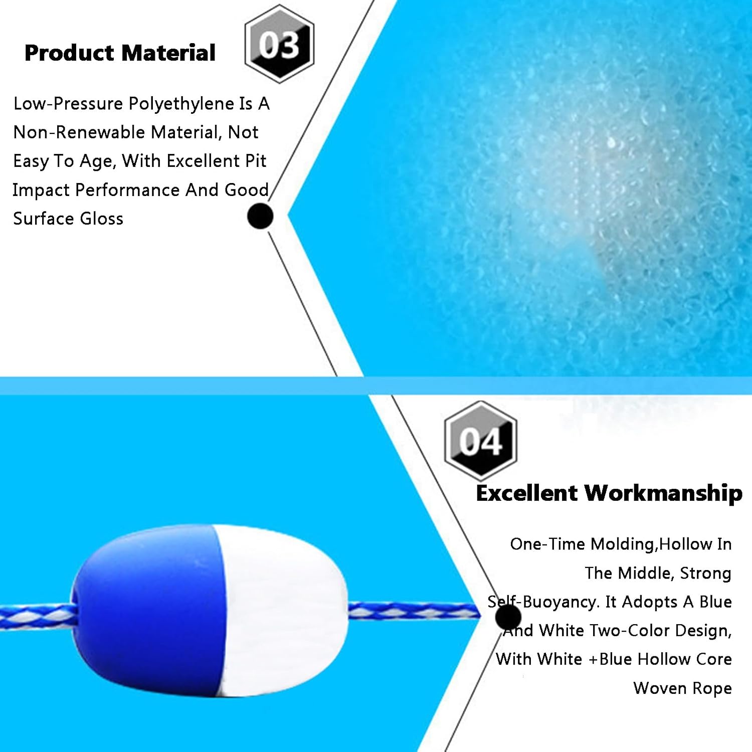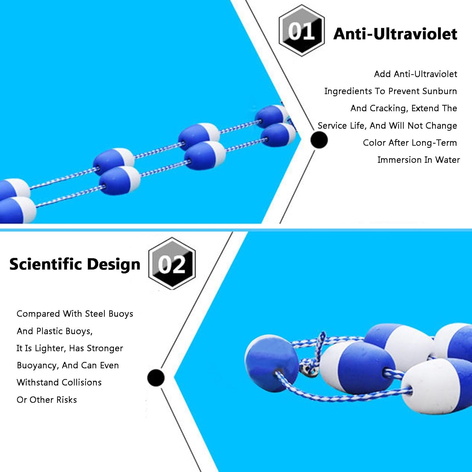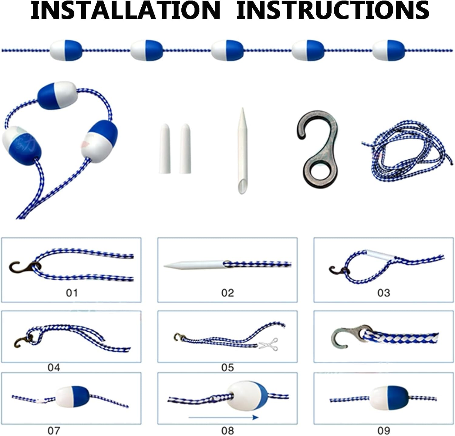 Enhance your swimming experience with our premium swimming pool safety dividers, designed for durability and versatility in various aquatic environments. Crafted for ease of installation, these dividers provide reliable safety for your family and friends while adding a professional touch to your pool area.DESCRIPTION:1. Constructed from thickened, high-quality materials, our dividers ensure long-lasting stability and safety.2. Featuring high-visibility colors, the pool buoys are easily identifiable in water, helping to clearly mark off areas for swimming or safety.3. Our buoy design is seamless, offering superior buoyancy and resistance to interference, ensuring they float steadily on the water's surface.4. The adjustable length allows you to customize the dividers to fit your specific needs, making them perfect for any pool layout.5. These effective visibility buoys are ideal for delineating hazardous zones or organizing swimming lanes, enhancing safety for all users.6. With included accessories, installation is straightforward and secure, ensuring a firm setup that won’t loosen over time.SPECIFICATION:Product Name: Pool Lane Dividers/Swimming Pool Safety RopeApplicable Scenarios: Suitable for indoor and outdoor swimming pools, inland waterways, shallow water areas, fishing zones, and more.The length of the pool safety divider can be customized to meet your requirements.PACKAGING INCLUDES:1 x Pool Lane DividersKIND TIPS:1. This listing includes only the Pool Lane Dividers; other items shown are for reference.2. A slight odor upon receipt is normal and will dissipate within a few days.3. Please allow for a minor measurement discrepancy of 1-2 centimeters due to manual measuring.