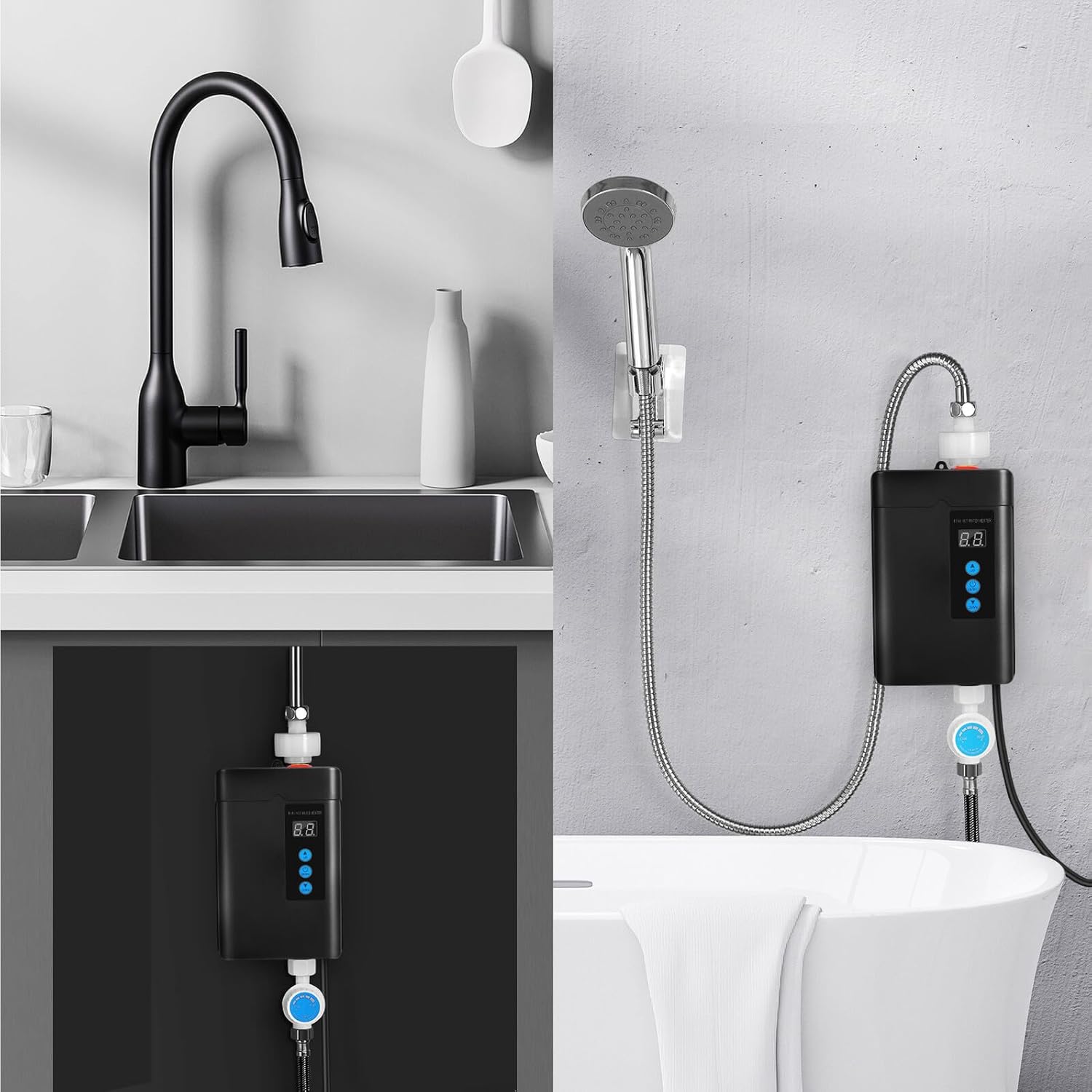 Package Include 1 x electric water heater 1 x remote control 1 x manual 1 x screw kit Features -Material:ABS, stainless steel kitchen water heater - Instant and constant temperature: The water heater quickly heats up and maintains a constant temperature, providing hot water anytime tankless water heaters -Product Info:Mini water heater -Size:24.00X13.50X6.50cm/9.43X5.31X2.55in instantaneous water heater -US Plug:110V kitchen tankless water heater - Stylish appearance: The portable water heater's sleek and modern design matches home decor, adding a touch of style to any room electric tankless hot water heater - Remote control: The water heater is equipped with a remote control for temperature control, making it easy to adjust the temperature tankless electric water heater -Voltage: AC110V tankless water heater - Versatile use: The tankless water heater is suitable for use in kitchens, bathrooms, laundry rooms, and other scenarios water heaters electric -Power:3000W electric water heater -Frequency:50-60Hz Indoor Tankless Water Heater -Color:Black bathroom water heaterGoods Descriptionkitchen tankless water heater The instant water heater comes with a remote control that allows you to adjust the temperature from a distance.water heater tankless Our instant water heater is equipped with quick heating feature.water heaters Note: This item comes with US plug, please confirm the voltage of your area before purchasing.electric tankless hot water heater This portable water heater can save space and provide convenience.instant water heater You can enjoy hot water anytime you want