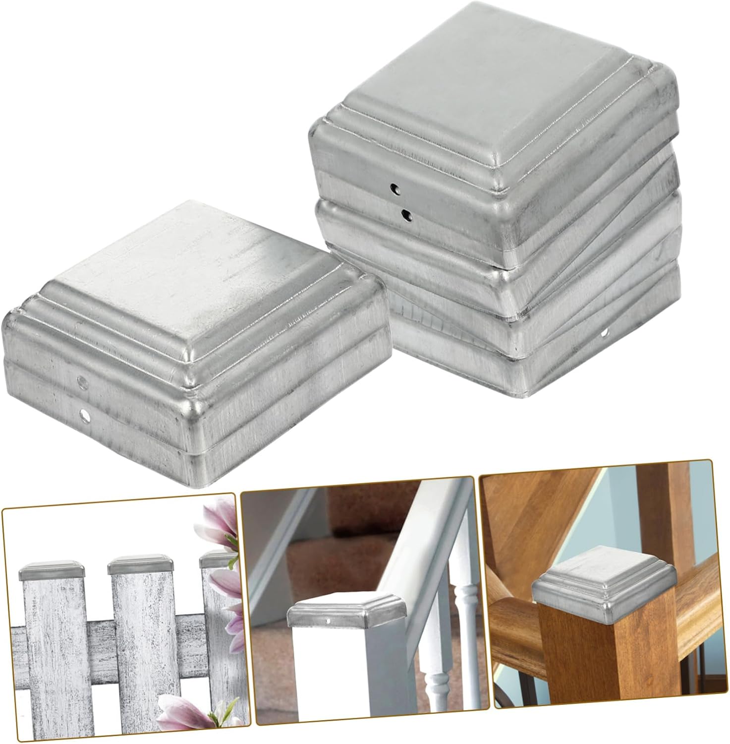 Package List 10 x Post Caps Features -Color:Silver post cap -Size:10.00X10.00X2.00cm/3.93X3.93X0.79in post cover cap -Material:Steel decorative fence post toppers -These fence post caps are easy to install and grip your posts tightly, not easy to fall off by the wind deck post caps. -These fence post caps nice for fence posts, guard bars, railing, guardrail, traffic barrier column, etc fence post caps round. - post damage that can be caused by sun, , stain and so on, extends the life of fence post fence post caps decorative. -Simple but nice silver color surface, decorate your fence, add a modern atmosphere for your house fence post finials -The installation and operation method of these fence post caps is simple and convenient plastic fence post cap.Goods Descriptionfence post caps round It is perfect for fence posts.finials for fence This post cap is adopted of , is and with .post cap Also delicate and square design also decorate your fence post and add of modern style to your house.railing post caps It does not hurt your hands with smooth edge