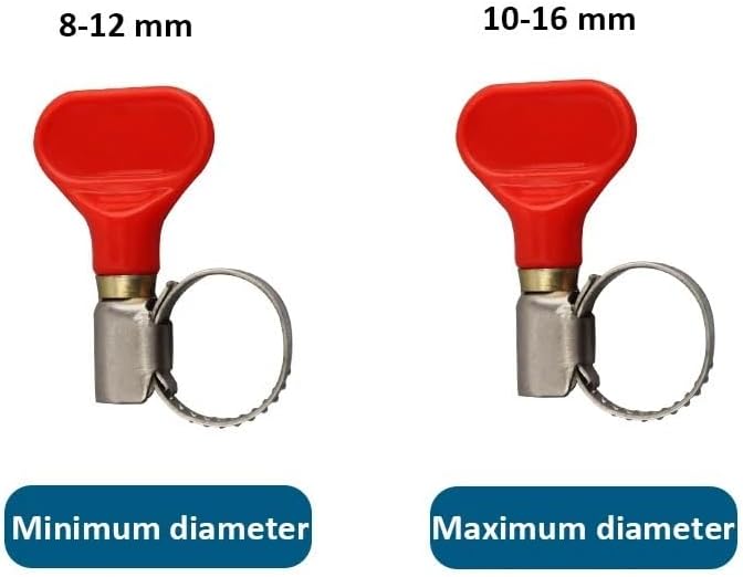 20Pcs/Lot Stainless Steel Hose Clamp Worm Gear Clamps, Adjustable Key-Type Red Hose Clip Brewing Thumb Pipe Clamps 8-12/10-16mm APPLICATION:These worm clamp are applied to lock the hose tightly with a view to prevent flow leakage, this hose clamp assortment kit can be applied for securing hose, cable, pipe, tube, fuel lines, beer line and so on.ADVANTAGES:Allow users to easily release or tighten without a screwdriver to adjust the band diameter rangeAdjustable handle make it easy to use and handleStainless Steel hose clamp, durable use and no worries about rust.SPECIFICATION:Material: Stainless SteelSize: 8-12mmor 10 - 16mmColor: As shown in illustrationQuantity: 20 piecestotallyPACKAGE INCLUDE:20 Pieces Stainless Seel Hose Clamps==========High-concerned chemical : NoneModel Number : Hose ClampsFeature : Eco-Friendly,StockedMetal Type : Stainless SteelMaterial : MetalBar Tools Type : Hose ClampOrigin : Mainland ChinaType : Bar ToolsModel : Homebrewing Hose Clamps / ClipType : 8-12mm / 10-16mmOrigin : China Factory