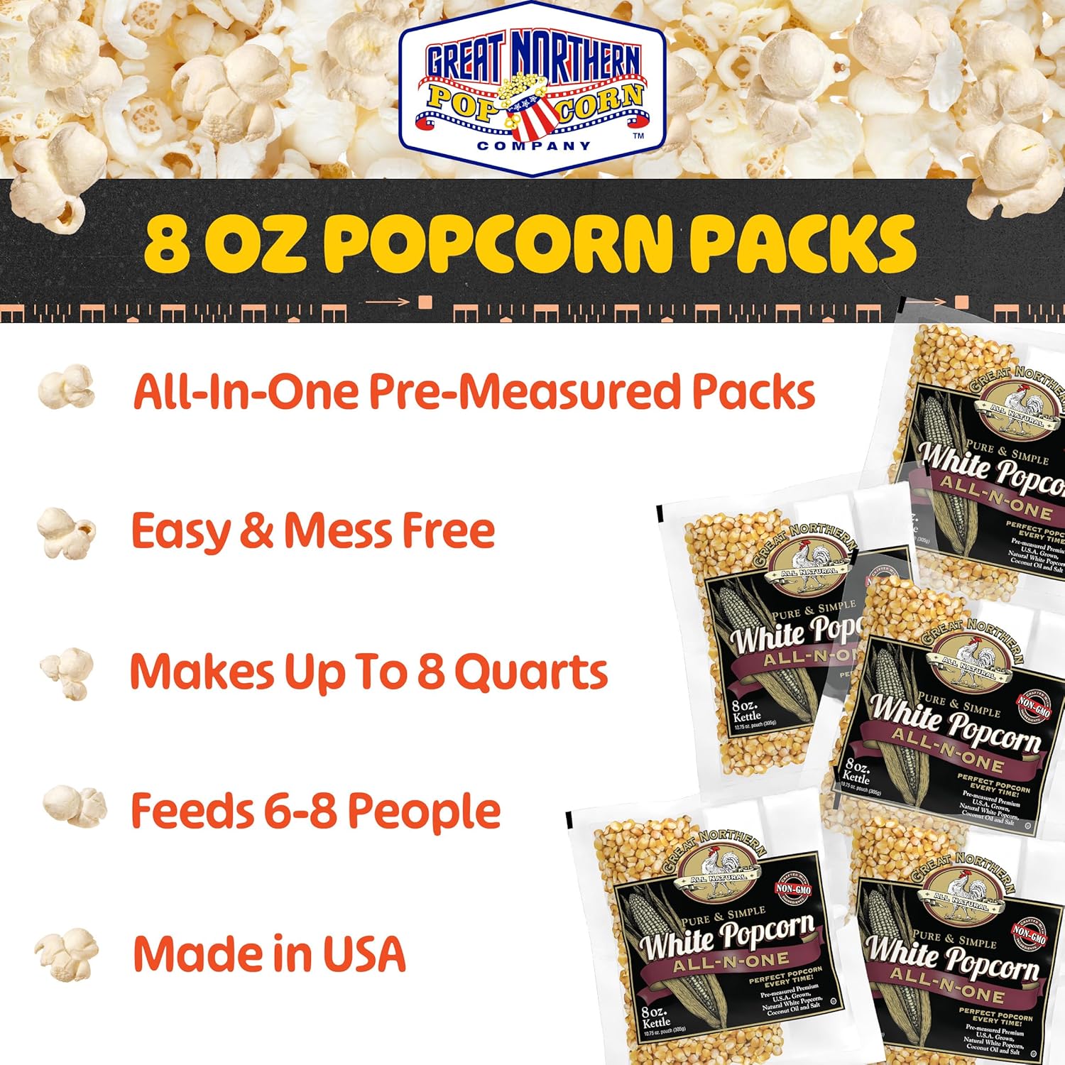 The 8oz Popcorn 5-Pack by Great Northern Popcorn makes it easy to pop and serve a theater-style treat at home. These popcorn machine supplies are ideal for use with machines with an 8oz kettle, and the packets include the perfect amount of pop corn kernels, coconut oil, and butter-flavored salt for consistently great tasting gourmet popcorn every time, with no mess or fuss. Each all-in-one, pre-measured snack pack serves 6-8 people and makes approximately 8-quarts of premium white popcorn, which is smaller, fluffier, and more tender than yellow corn. IMPORTANT: Great Northern Popcorn is committed to providing the consumer with the absolute best price and value on all of our products. NOTE: This is an exclusive product of Great Northern Popcorn and ONLY the Popcorn Kernels for Popcorn Machine by Great Northern Popcorn are GUARANTEED to be genuine. Avoid buying counterfeit products and transacting with unauthorized sellers.