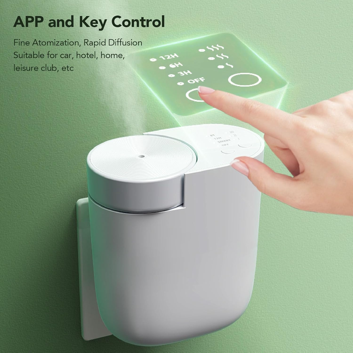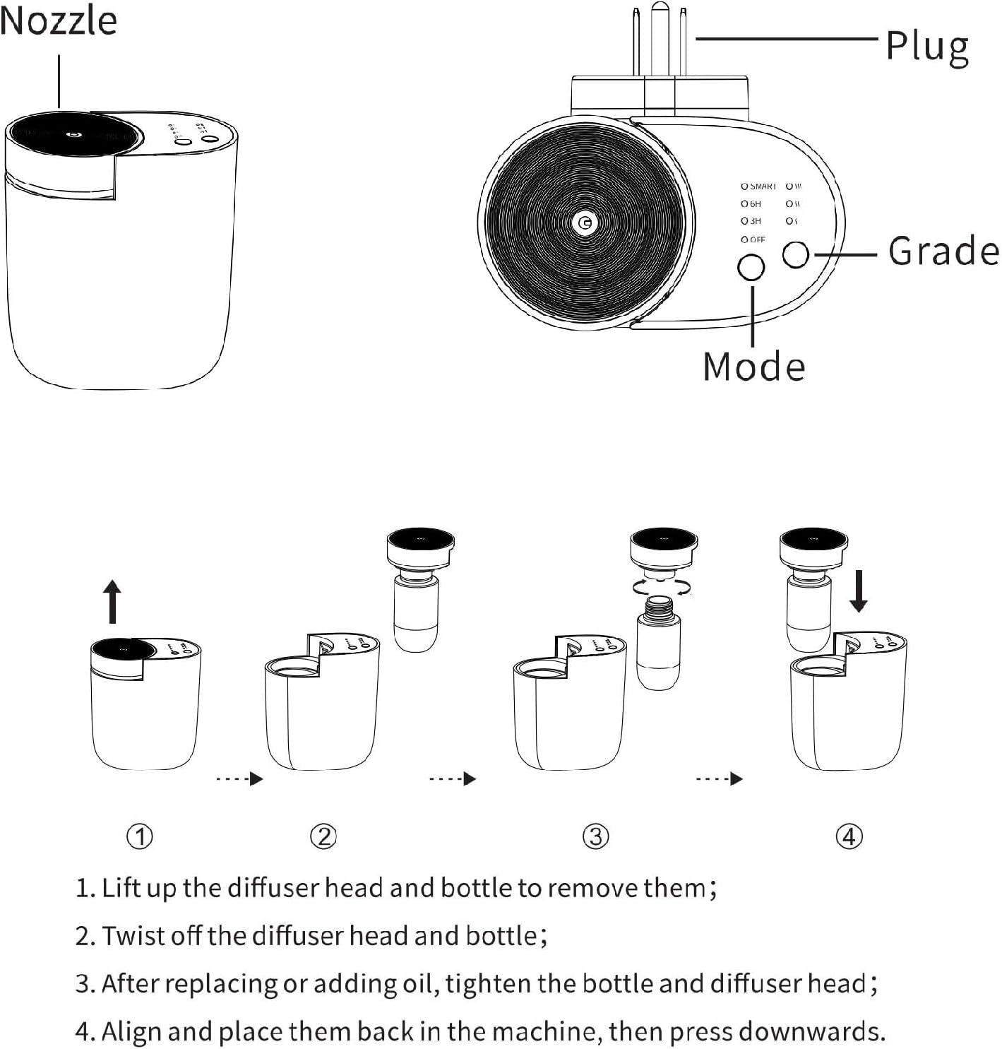 Specification: Item Type: Scent Machine Coverage Area: 30㎡ Capacity: 60ML Size: Approx. 110 x 101 x 60mm / 4.3 x 4 x 2.4in Operating Mode: BT APP control, key control, can be adjusted as needed during use Product Material: Plastic Applicable Occasions: Car, hotel, home, hot spring resort, sauna, SPA, KTV, leisure club Weight: Approx. 367g / 12.9oz How to Use: Scan the QR code in the instruction manual to download the APP, or search for Scent Marketing on application store. PackageList: 1 x Scent Diffuser 1 x Cover 1 x User Manual Notice: You can use either concentrated essential oils or water based essential oils.
