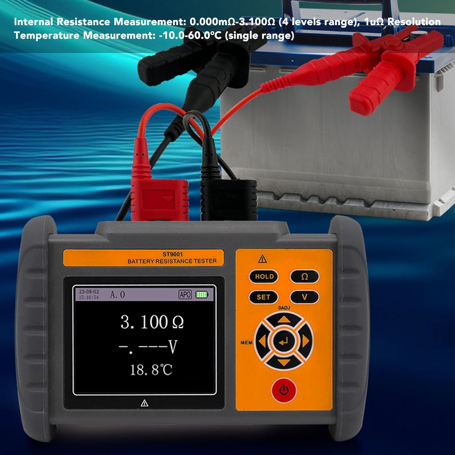 • Measurement Range: The battery internal range is 0.000mΩ‑3.100Ω (4 levels), with 1uΩ resolution, the temperature range is ‑10.0‑60.0℃ (single range), and the voltage range is 0.000V to ±100.00V (2 levels).