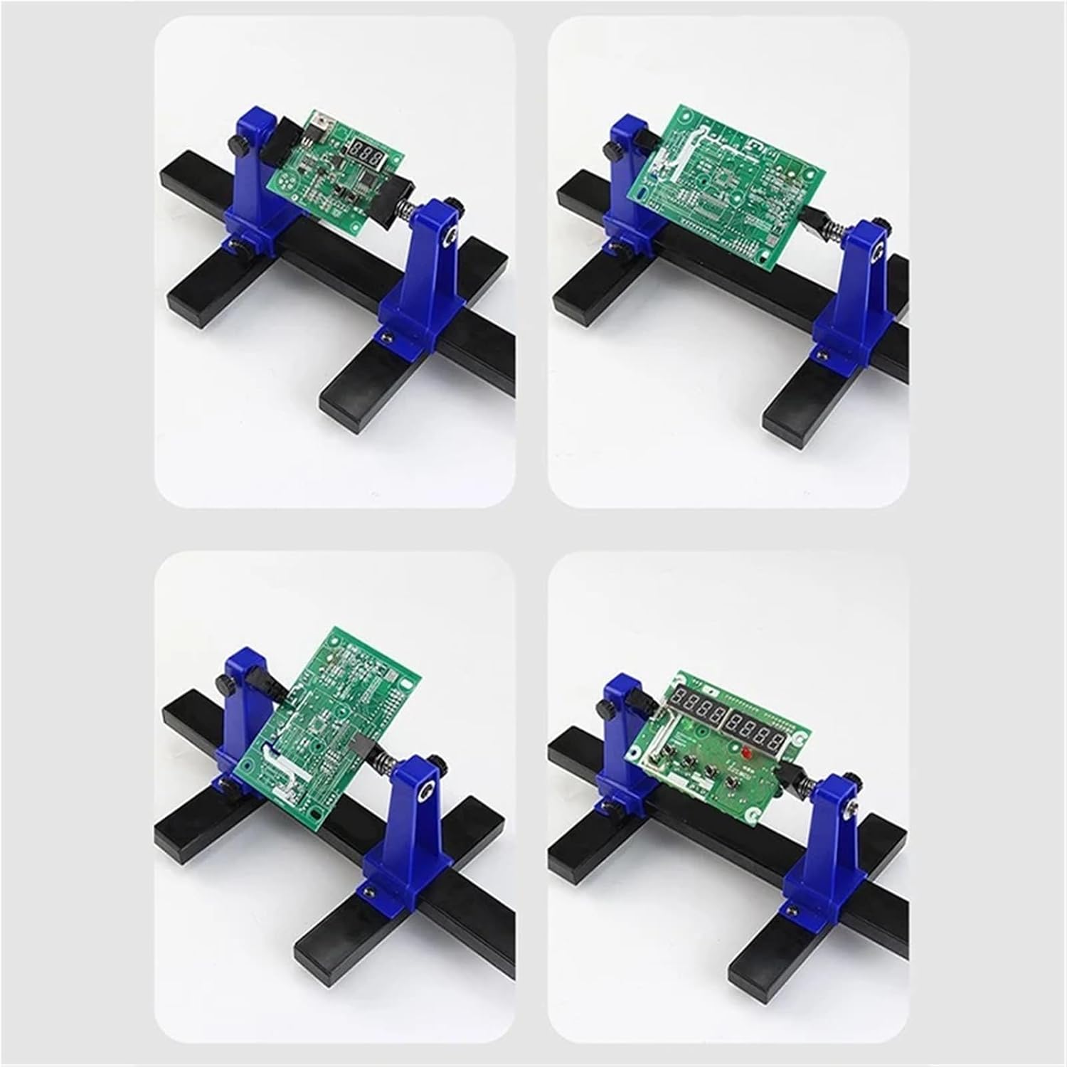Pneumatic Hold Down ClampsParameters:Model:SN-390Material:ABS+metalMaximum PCB Clamping Size: 20 X 14cm/7.87 X 5.51inch(L*W)Clamping Thickness: 1.2mm/0.05", 1.8mm/0.07", 2.0mm/0.08", 3mm/0.12"PCB Holder Size: 30 X 16.5 X 12.5cm/11.81 X 6.50 X 4.92(L*W*H)Adjustable printed circuit board holder (PCB) holds objects in place for soldering, repair or inspection functions Wide base with rubber feet creates a solid and safe work platform. Spring-loaded clamp holds objects up to 7 ¾" wide (198 mm) securely in place. Clamps rotate 360 degrees to allow for easy access to all sides of objects.==========Material : PlasticType : Hand Tool PartsOrigin : Mainland ChinaUse : Home DIY