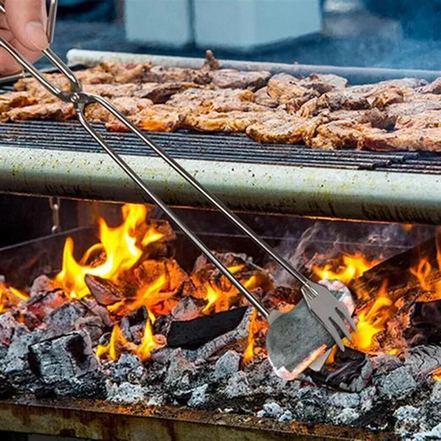 The fire tongs come in handy whenever you build a fire. Ideal for campfires, fireplaces, outdoor fire pits, wood burning stoves, indoor fireplaces and outdoor fireplaces. Ideal for safely adjusting and picking up fireplace logs. Color: Silver Material: Stainless steel Size: As shown Package Includes: 1 x Fire tongs Note: - Please refer to the measurement. Tiny measuring error is allowable in normal range. - There might be a little color difference due to the monitor, camera or other factors, please refer to the physical item.