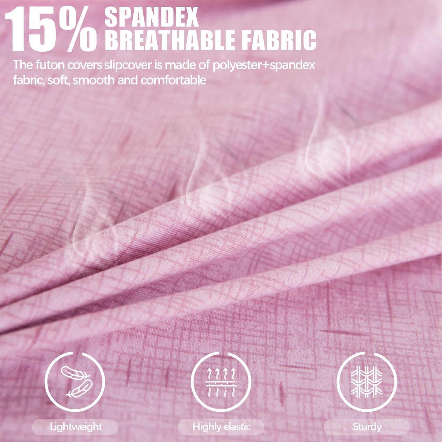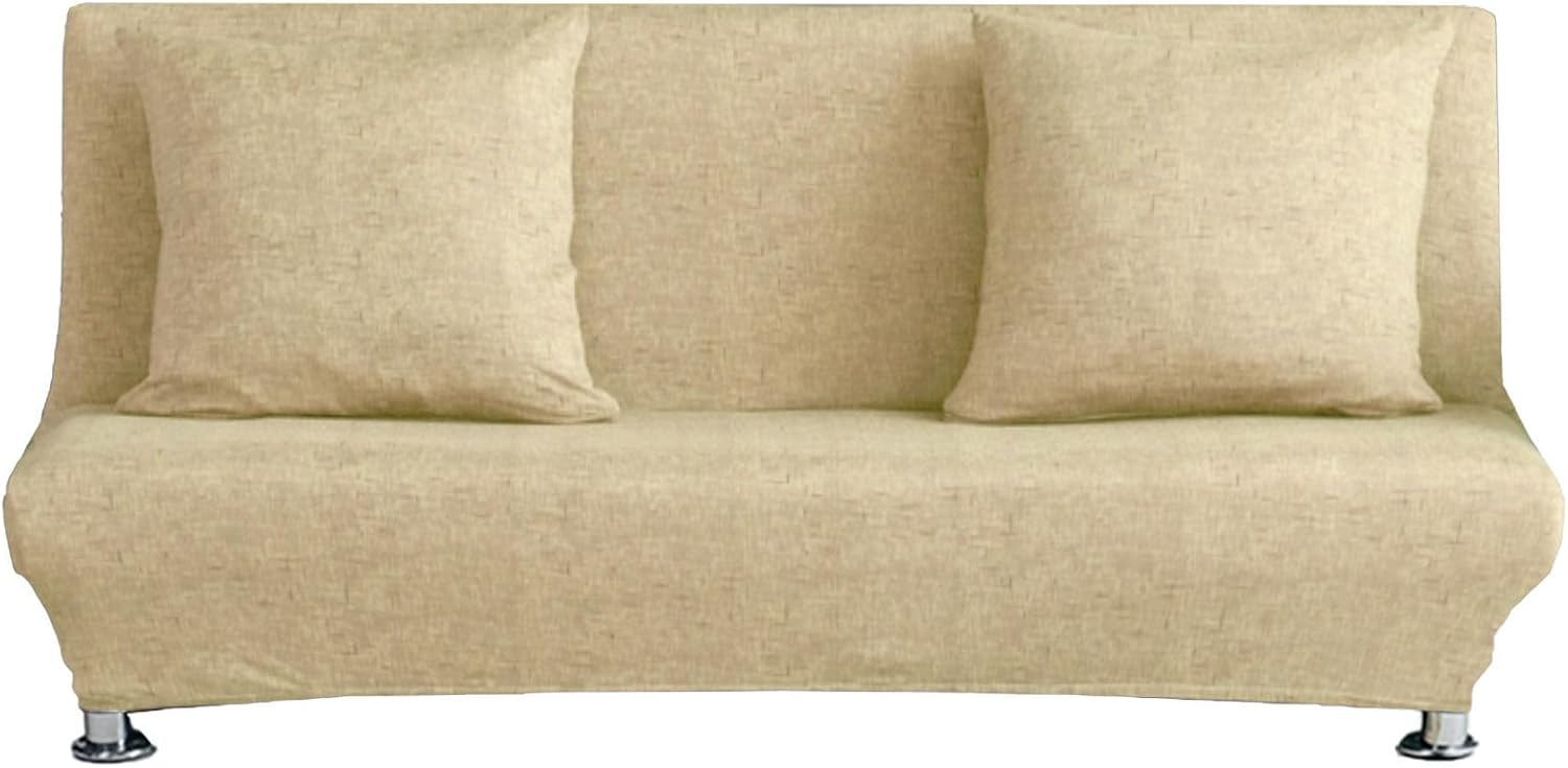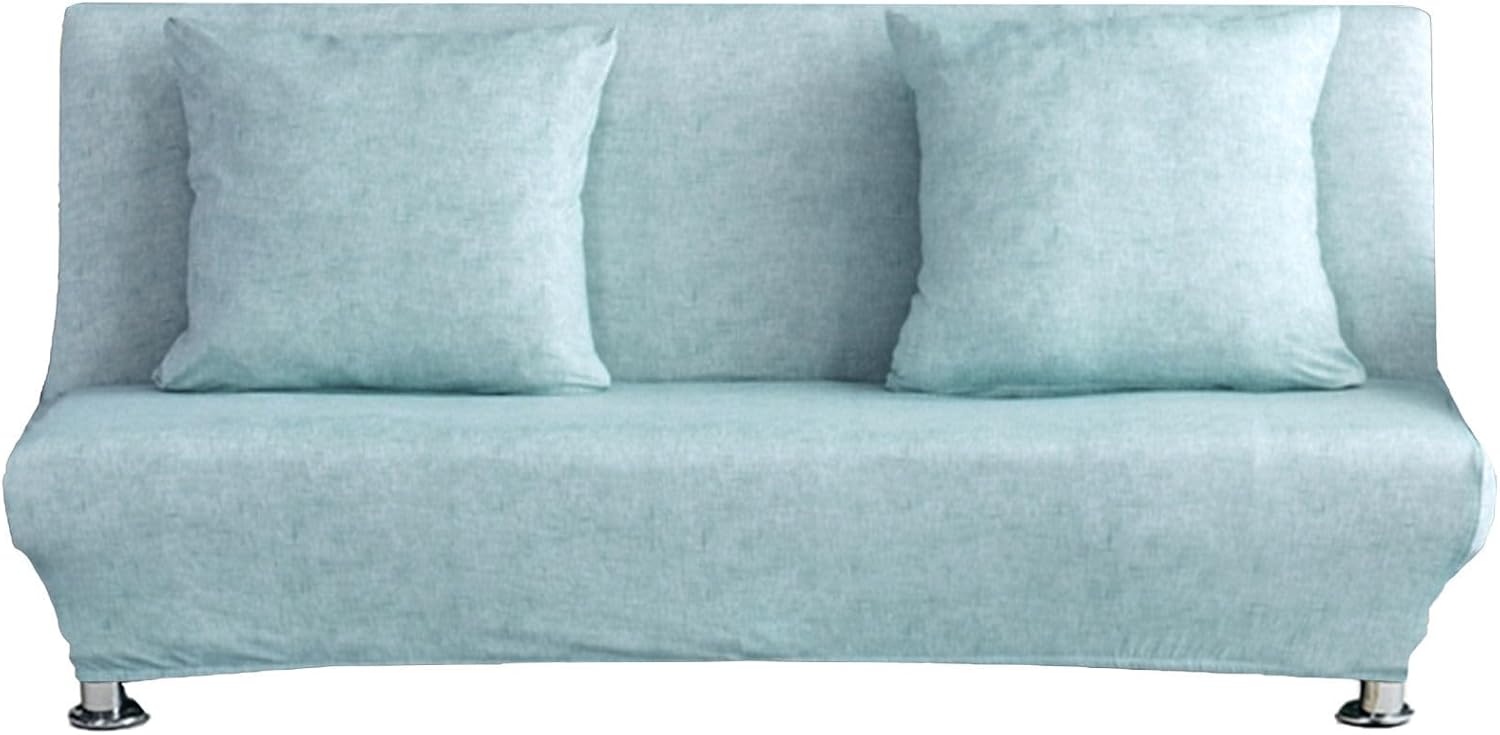 Our futon cover are made of polyester spandex, it will make your furniture more fresh and clean. Perfect for Homes with pets.Features:-This futon slipcover protector is made of gentle polyester, soft rich and textured.-Armless sofa cover seat couch protector fits for 2-3 seater.-Futon cover slipcovers can be detached to clean at any time, suggest washing it in cold water, gentle cycle, do not bleach. No ironing.-Our armless sofa bed cover equips with the stretchable elastic band at the bottom, which keeps the futon cover rigidly fixed in place.Installation Steps:Steps 1: Position the slipcover over the sofa with the label at the back.Steps 2: Pull the fabric evenly over the sofa, stretch to fit around furniture, pull fabric down so elastic bottom under the four sides.Steps 3: Adjust the cover to make sure it to fit the furniture.Steps 4: Tuck the extra fabric into the gap between the back and sitting area.Steps 5: Enjoy your newly covered sofa!Note:This sofa cover is only suitable for non-armrest sofas or armless futon or folding sofa bed, NOT fit for sofa with armrests, please check the style of your sofa bed and read our size guidance carefully.2.Wrinkle free for easy maintenance. Machine washing in cold, do not bleach, tumble dry low and no iron.