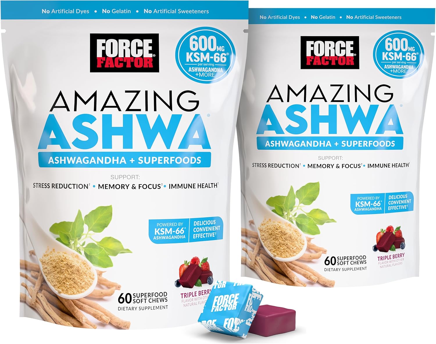 Amazing for Mind & Body With every serving, Amazing Ashwa delivers a potent dose of clinically studied KSM-66 Ashwagandha extract, B vitamins for energy, and immunity-boosting vitamin D. It also includes a variety of superfoods like Bacopa monnieri, maca, Panax ginseng, L-theanine, and green tea extract. Just two delicious soft chews per day is all it takes to help you relax, relieve stress, and restore balance to your mind and body. If you’re looking for a powerful ashwagandha supplement to support your health and vitality and help provide much-needed stress relief, you can’t go wrong with Amazing Ashwa. Add a bag to your cart now – you’ll be happy you did.