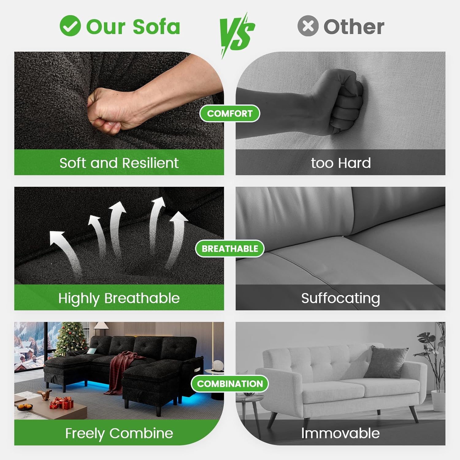 | Material Features | Hardwood frame, High density foam, Upholstered |