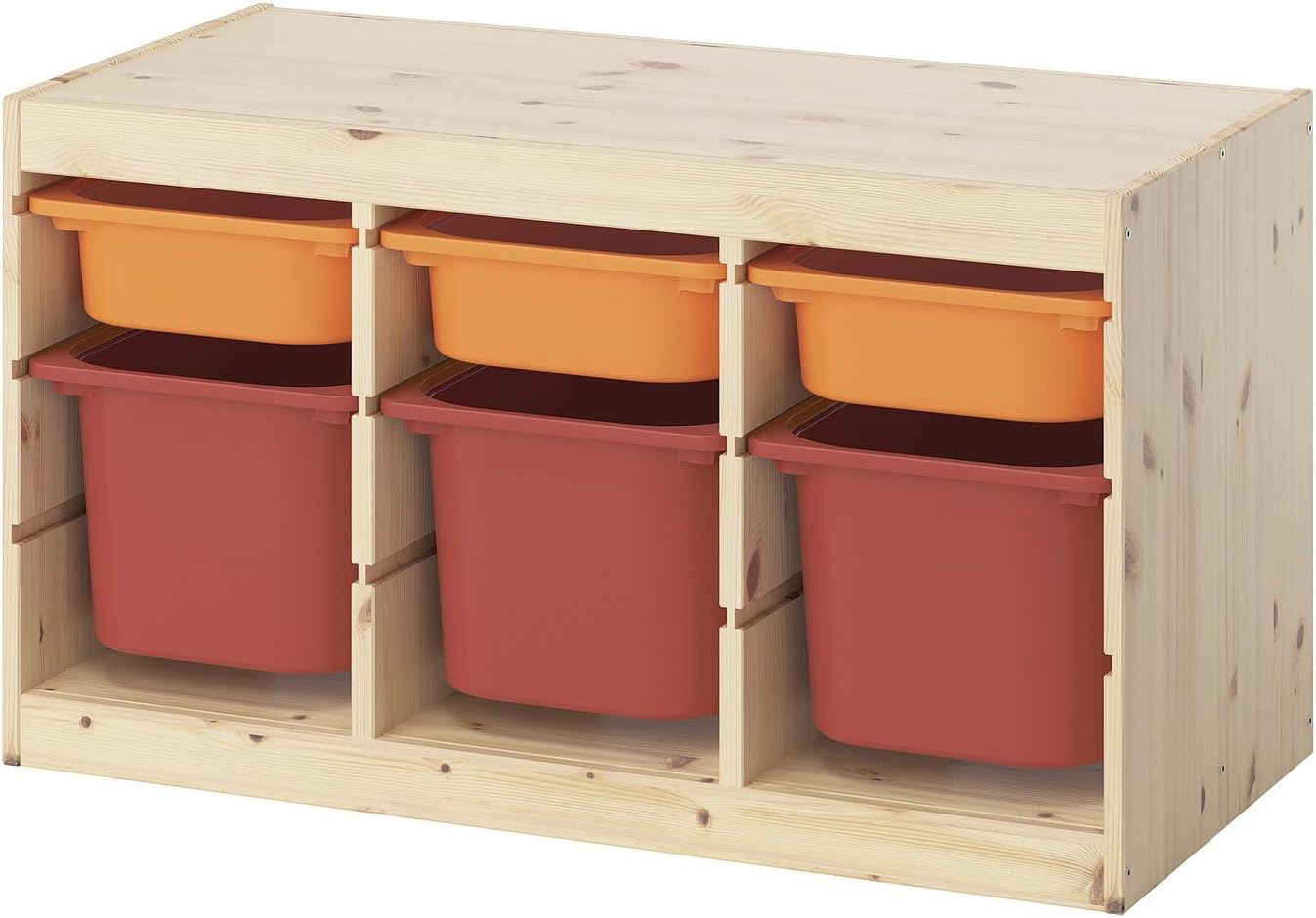 Children need good and spacious storage for their things. The TROFAST series has wooden frames, mesh boxes and plastic boxes and trays (min. 50% recycled). Easy to pull out, carry and put back in again.📝 Product Details📝 A playful and sturdy storage series for storing and organizing toys, sitting, playing, and relaxing.📝 The frame has several grooves, so you can place boxes and shelves where you want them, and change them any time.📝 Low storage makes it easier for children to reach and organize their things.💡 Good to Know💡 Can be used with TROFAST lid.💡 Recommended for indoor use only.💡 Not approved for food contact.🪵 Material🧼 Care🧼 Wipe clean using a damp cloth and a mild cleaner.🧼 Wipe dry with a clean cloth.📦 What's included📦 1 x Frame📦 3 x Storage box📦 3 x Storage box📏 Measurements📏 Depth:17 3/8 "📏 Height:20 1/2 "📏 Width:36 5/8 "