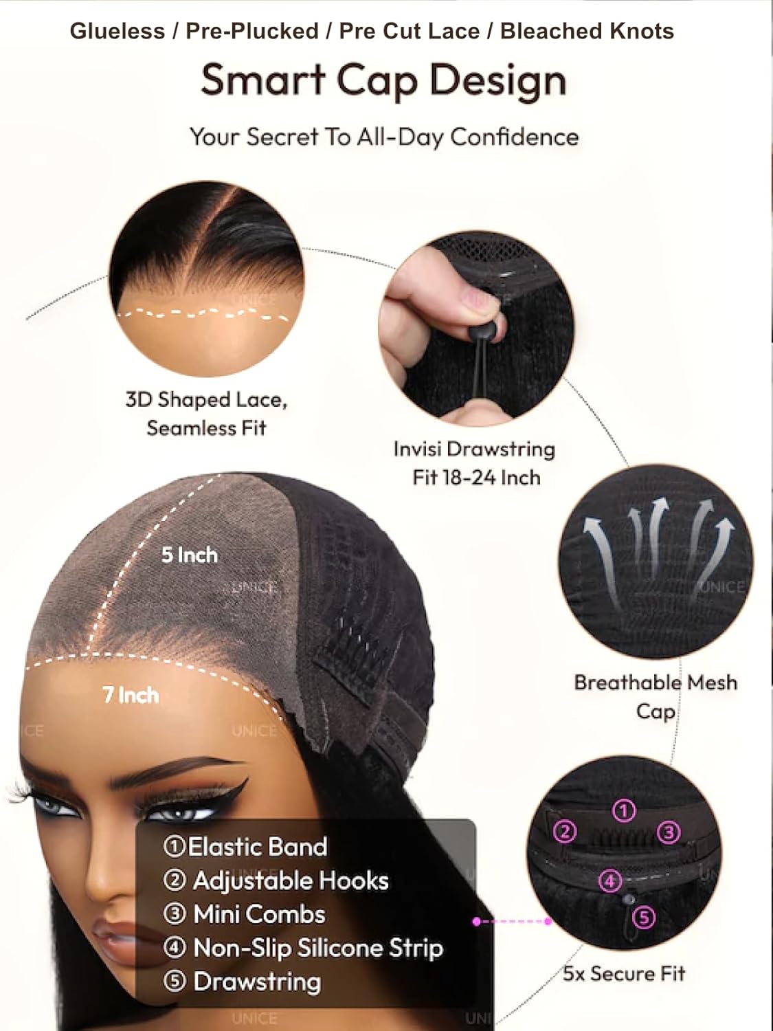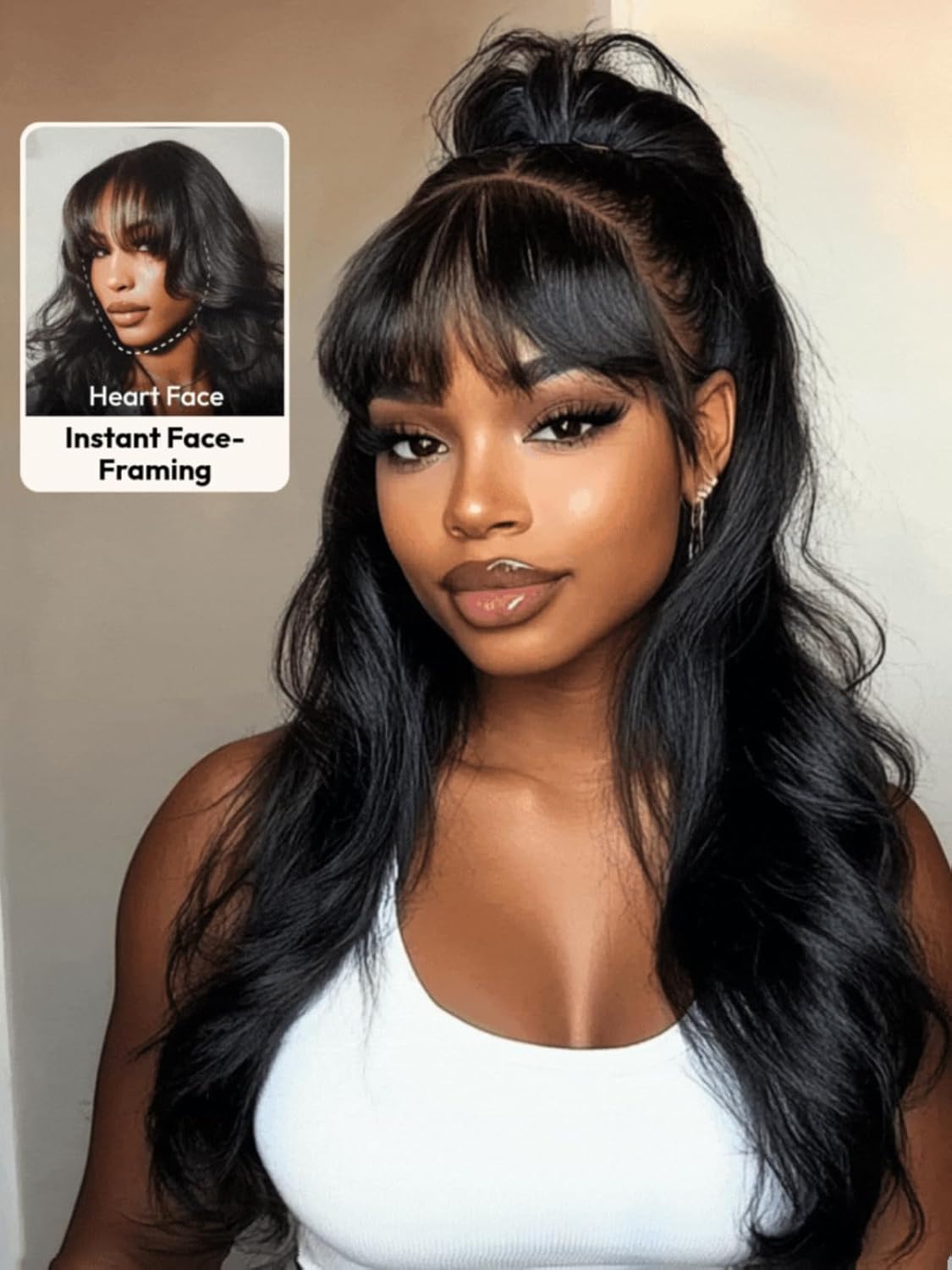 | Color | Natural Black |7X5 Lace| 180% Density Curtain Bangs |