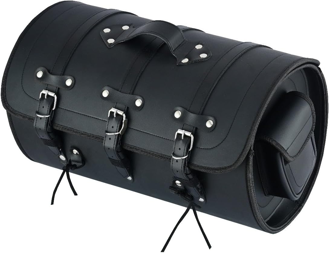 The Vance Plain PVC Motorcycle Tail Bag is designed for riders seeking practical, no-frills rear seat storage for cruiser and touring motorcycles. Made from thick, heavy-duty PVC material, this motorcycle tail bag helps protect contents from dust, road debris, and light moisture during daily rides or longer trips. The structured construction allows the bag to retain its shape while mounted or fully loaded. With overall dimensions of 0.5 x 12 x 11.5 inches, the main storage compartment provides ample room for gloves, tools, rain gear, or personal items. Two exterior side pockets add organized storage for smaller accessories. Adjustable quick-release mounting straps allow easy installation and removal on most motorcycle rear seats or luggage racks. Reinforced stitching and strong hardware support repeated use, while the plain exterior offers a clean, universal look compatible with a wide range of cruiser and touring bikes.